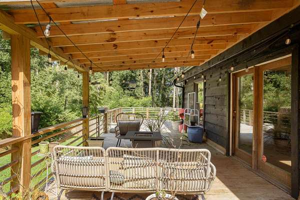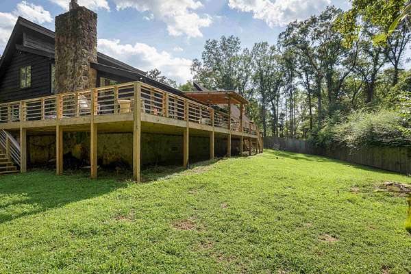 Architectural Retreat on 11.96 Wooded Acres Striking 4-bed, 3-bath contemporary home on nearly 12 acres of privacy and natural beauty. Inside, a custom kitchen with Big Chill appliances flows into spacious living areas, including an open library and a marble-finished primary bath. Step outside to enjoy the 1,100 sq ft wraparound deck overlooking the wooded surroundings. The walk-out basement offers a fireplace, storm shelter, and is ready to be finished to suit your vision. Recent updates include all-new electrical, new well and filtration system, HVAC, and a tankless water heater - providing modern comfort with peace of mind. A rare and distinctive property offering space, privacy, and endless potential.