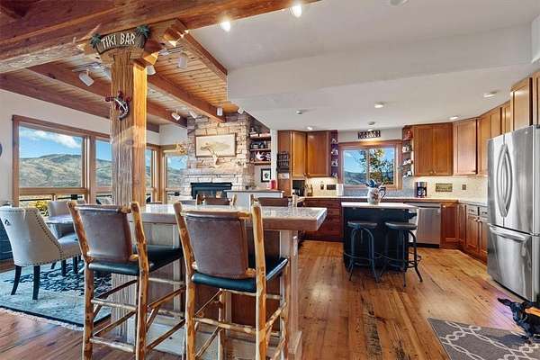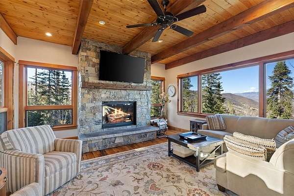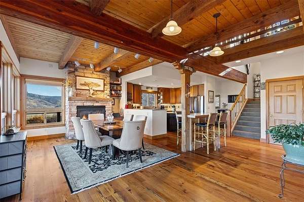 Welcome to 30720 Elk Lane – a truly coveted 5-acre forested retreat in the heart of Steamboat Springs. This rustic luxury property blends the warmth of mountain living with the comfort of a home designed for gathering, relaxing, and enjoying Colorado’s year-round beauty. From the moment you arrive, you’re greeted by timeless heart pine floors and fir accents that create an inviting, homey atmosphere. Inside, open living spaces flow seamlessly, boasting breathtaking views of the ski mountain, and offering cozy nooks for quiet evenings and expansive rooms for entertaining. Large windows frame sweeping views of the surrounding Yampa Valley, bringing the outdoors in and flooding the home with natural light. The rustic character shines through in every detail—soaring wood-beamed ceilings, stone finishes, and a 200-year-old barn wood mantel and hearth made of stone that anchors the main living area. At the same time, modern comforts ensure this home feels as practical as it is picturesque. Whether you’re sipping coffee on the porch at sunrise, hosting friends after a day on the slopes, or enjoying a quiet night by the fire, every moment here feels special. Shown by appointment only. Owner occupied. Please do not disturb.