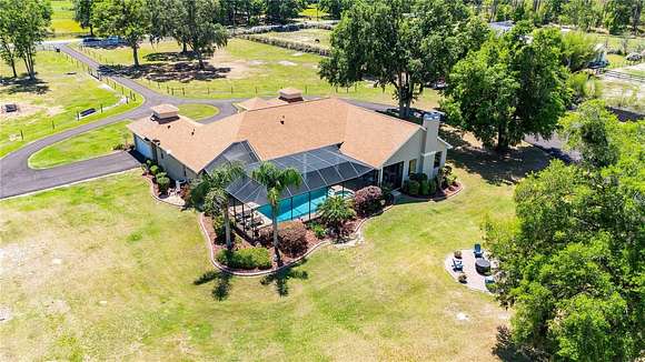 Welcome to your DREAM ESTATE--an exceptional 4-bedroom, 3-bathroom home spanning an impressive 3,769 square feet, perfectly situated on 10 tranquil acres of pristine countryside. From soaring ceilings and breathtaking views to refined finishes and cozy touches like a fireplace, this home beautifully blends luxury and comfort. The open-concept floor plan is graced with plantation shutters and a chef-inspired kitchen featuring granite countertops, a breakfast bar, double wall ovens, custom cooktop, and a spacious walk-in pantry. The expansive primary suite offers a true retreat, complete with a cozy sitting area and direct access to the pool. The luxurious en-suite bathroom boasts dual granite vanities, a walk-in shower, a soaking tub, and a massive walk-in closet. Guests enjoy their own private wing, featuring a beautifully appointed bathroom with granite countertops and ample space to relax. Designed for effortless entertaining, the backyard is a private oasis with paver walkways, a firepit area, and a generous covered paver patio overlooking the heated saltwater pool and spa--complete with a dedicated pool bath and multiple covered lounging areas. Practical updates offer peace of mind, including a new roof (2023), water softener and 2 newer hot water heaters, and a new asphalt driveway with entrances to both garages and a circular drive for your grand entrance (2025). For hobbyists, the 40x60 barn workshop features three bays and electricity. The fully fenced property includes two front pastures, a rear pasture, and even a 50-yard covered shooting range. Additional highlights include two separate 2-car garages, offering abundant storage and vehicle space, and a recently installed Starlink internet system that stays with the home. This one-of-a-kind estate delivers a lifestyle of elegance, privacy, and unmatched functionality. Schedule your private tour today and experience luxury living at its finest.
