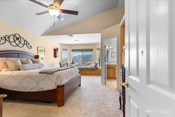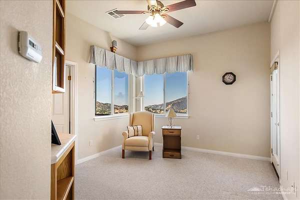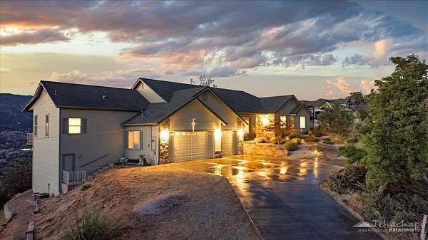 Your Hilltop Haven! Perched on 3.86 private acres in the beautiful, gated community of Bear Valley Springs, this custom Cannon-built home offers breathtaking panoramic views of the valley, lakes, and surrounding mountains. Originally constructed in 1999 and thoughtfully expanded in 2006, this 4 BD / 3BA split-wing home offers space, flexibility, and elegant design throughout.Step into a bright, open layout featuring a spacious living room with wood stove, graceful architectural arches, and a seamless flow into both formal and informal dining areas. The kitchen is a cook's delight with granite countertops, a walk-in pantry, breakfast nook, and abundant cabinetry. The expanded living space invites relaxation with a cozy sitting area, wet bar, private bedroom, bath, and a large closet, perfect for guests or multi-generational living.The primary suite is a true retreat, featuring a walk-in closet, jetted tub, dual-spray shower, and expansive picture window framing the natural beauty outside. All bedrooms and main living spaces are equipped with ceiling fans for year-round comfort, and recent upgrades include luxury vinyl plank flooring and plush carpet.Additional highlights include a 3-car garage with built-in storage, dual HVAC systems, fiber optic internet, two 50-amp outlets for RVs or EVs, and a wonderful yard with several garden areas, multiple view decks, a workout/wine room (approx. 120 SF not included in total square footage), and a storage shed.This lovingly maintained home is ready to welcome you. Don't miss your chance to fall in love with your dream home and its forever views.