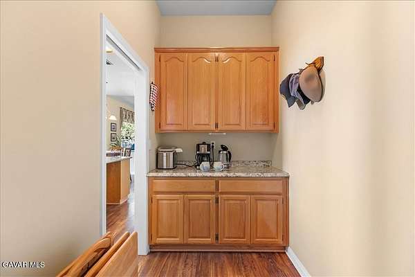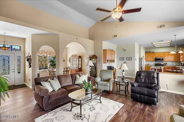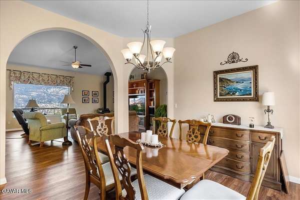 Your Hilltop Haven! Perched atop 3.86 private acres in the beautiful, gated community of Bear Valley Springs, this custom Cannon-built home captures breathtaking panoramic views of the valley, lakes, and surrounding mountains. Originally built in 1999 and thoughtfully expanded in 2006, the spacious 4-bedroom, 3-bath split-wing design offers both comfort and versatility.Step inside to a light-filled, open floor plan featuring a welcoming living room with a cozy wood stove, graceful architectural arches, and a seamless flow into formal and casual dining spaces. The well-appointed kitchen is a cook's delight, complete with granite countertops, abundant cabinetry, a walk-in pantry, breakfast nook, and plenty of room to gather.The expanded living area creates an ideal private retreat for guests or multi-generational living, offering a comfortable sitting area, wet bar, bedroom, bath, and generous closet space.The primary suite provides a peaceful escape, featuring a walk-in closet, relaxing jetted tub, dual-spray shower, and a large picture window perfectly framing the natural beauty beyond. Ceiling fans throughout ensure year-round comfort, while recent updates include luxury vinyl plank flooring and plush carpet.Additional highlights include a 3-car garage with built-in storage, dual HVAC systems, fiber optic internet, and two 50-amp outlets ready for RVs or EVs. Outside, enjoy multiple view decks, garden areas, a storage shed, and a versatile workout/wine room (approx. 120 sq ft, not included in total square footage).Lovingly maintained and surrounded by unforgettable views, this special property invites you to relax, unwind, and truly feel at home.