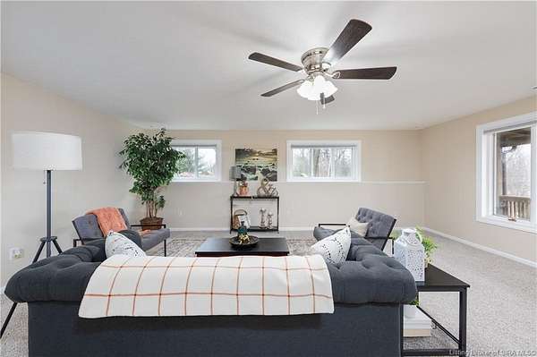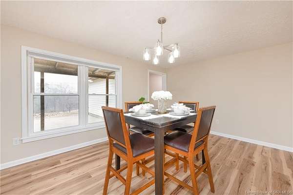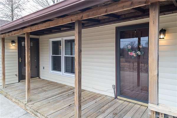Over 6 acres of rolling Southern Indiana beauty in the highly sought-after New Albany-Floyd County School District. Opportunities like this are rare offering space, privacy, and peaceful surroundings with a beautifully updated, move-in-ready berm home.The property features open fields and scenic rolling hill views, creating the perfect setting for quiet mornings, evening sunsets, gardening, recreation, or simply enjoying the serenity that acreage living provides. Inside, you'll find new flooring, fresh paint, updated kitchen cabinets, new countertops, and beautifully updated bathrooms making this home truly turnkey. Large windows provide abundant natural light throughout. The thoughtfully designed layout offers three bedrooms and two full bathrooms, with bedrooms situated on separate hallways for added privacy. All bedrooms include proper egress, providing safety and functionality. An oversized dining room and eat-in kitchen offer flexible space for entertaining or everyday living. The expansive living room provides generous gathering space and includes a large storage closet for added convenience. Relax on the front porch and take in uninterrupted countryside views across your private 6+ acres a rare find in this desirable location. If you've been searching for acreage with modern updates and proximity to town, this property delivers land, style, and opportunity all in one. One seller is a licensed real estate agent.