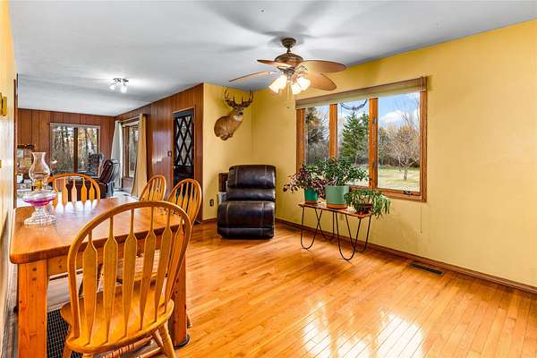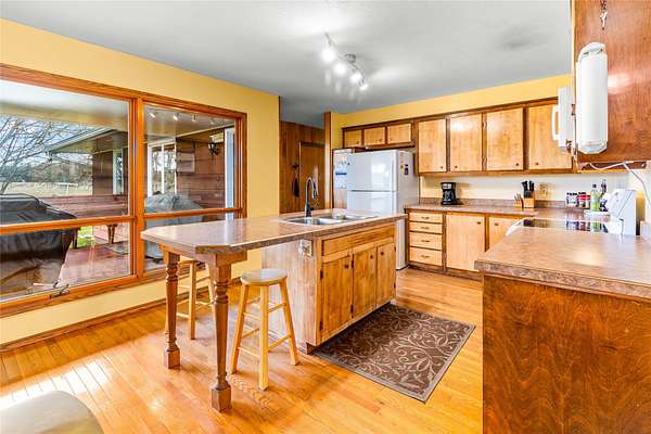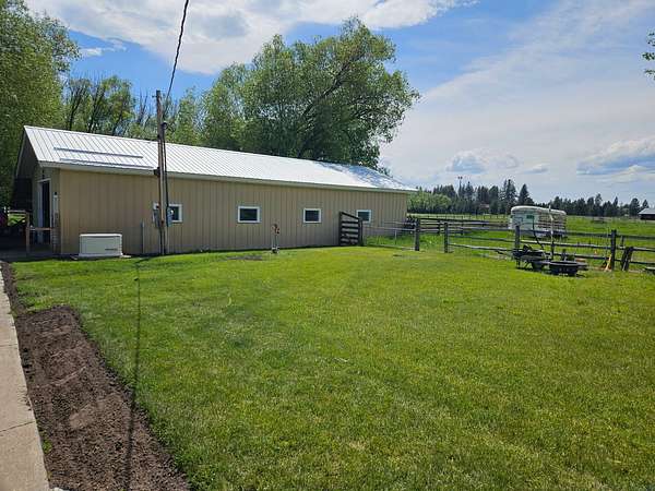 If you've been looking for usable acreage, functional outbuildings, and Swan Range views, this 4.82-acre property checks the boxes. Fully fenced and equipped with six frost-free waterers, it's ready for horses, livestock, or a practical hobby ranch. The ranch-style home offers 1,795 sq ft of main-level living with 3 bedrooms and 2.5 bathrooms, designed for comfortable, everyday use. A full 1,795 sq ft unfinished basement provides excellent storage and future potential. Outbuildings add real functionality, including a 1,800 sq ft shop with 220 power, high ceilings, wood stove, and a new roof in 2020-ideal for equipment, vehicles, or workspace needs. A 30x30 pole barn with attached garden shed provides additional storage and flexibility. The property also features 8 fruit trees and a 22kW Generac generator, adding to its self-sufficiency and appeal. Whether you're looking for a horse setup, small ranch, or simply clean, quiet country living with mountain views, this property offers a solid, usable setup with room to grow. Picnic table will stay with the property. Pile of Fence posts and cedar fencing materials stay with the property. Laundry room curtain is not included.