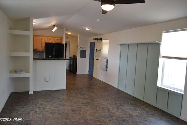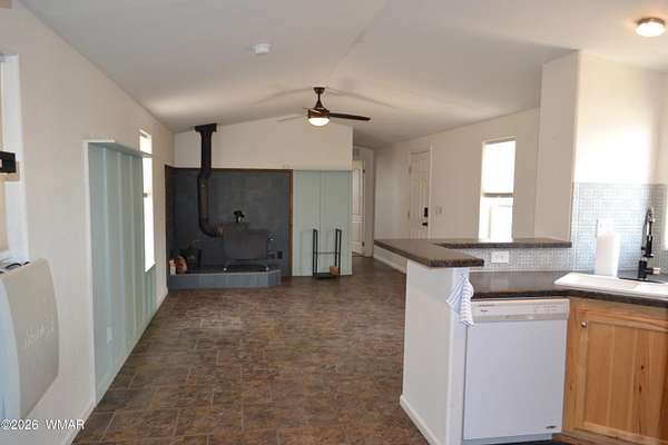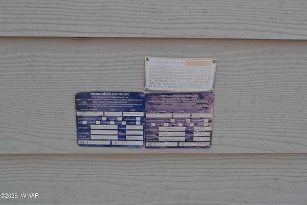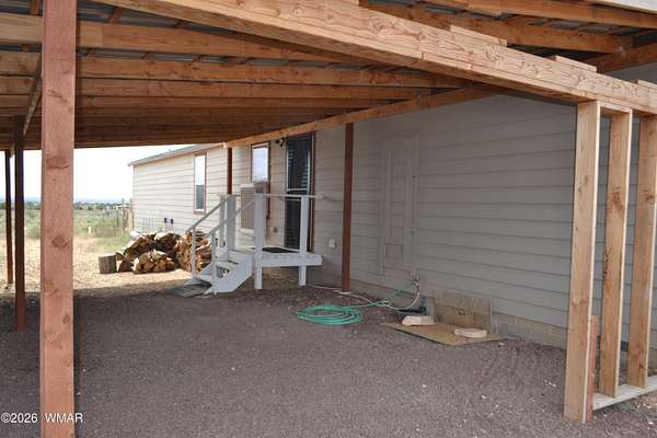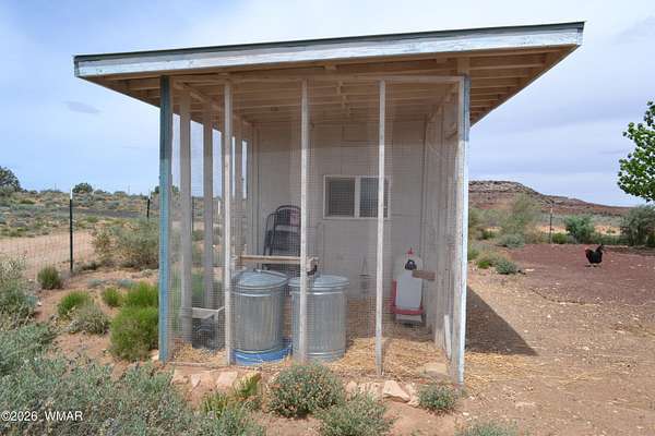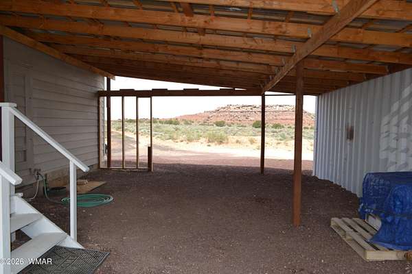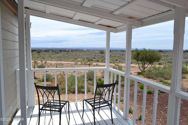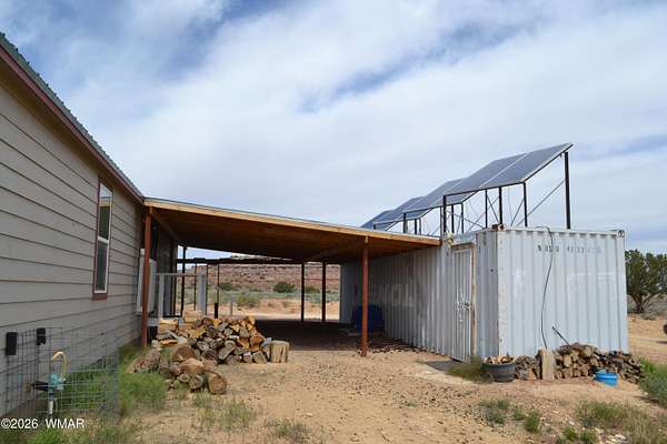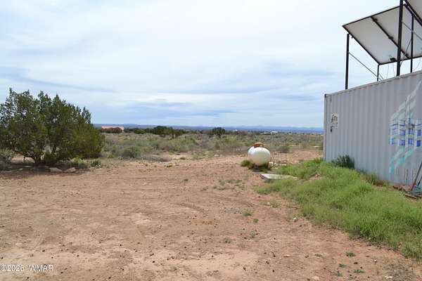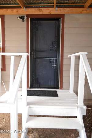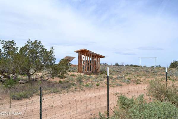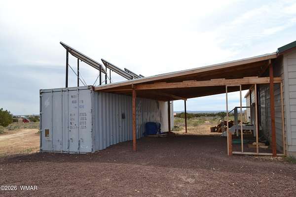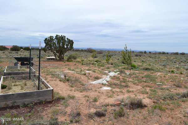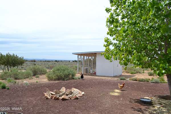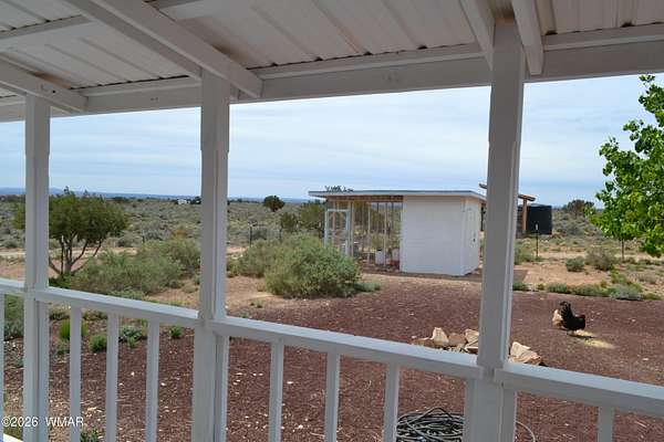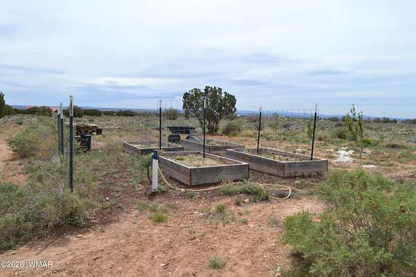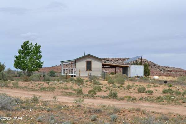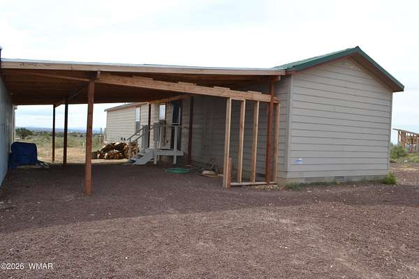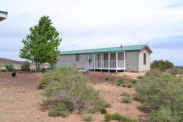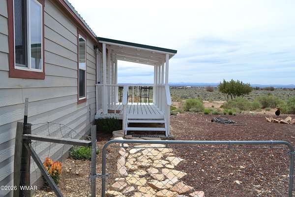 Charming single-wide home on a stem wall featuring 2 bedrooms and 2 bathrooms, plus a cozy wood-burning fireplace in the living room. Recent upgrades include newer lithium batteries and a house pump. Enjoy stunning panoramic views of the White Mountains from the covered deck. The property includes a carport, storage container, fenced yard, and a well-built chicken coop. Gravity-fed water spigots service the garden and front yard. Situated on a portion of a 36-acre parcel currently being split (new parcel number to be assigned), the land is fenced on three sides with no-climb fencing and has two entrance gates. Located close to Four Mile Knoll and just 10 minutes north of Snowflake. Enjoy cooler summers at an elevation of 5600', and the four seasons.