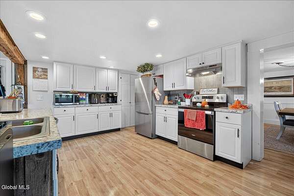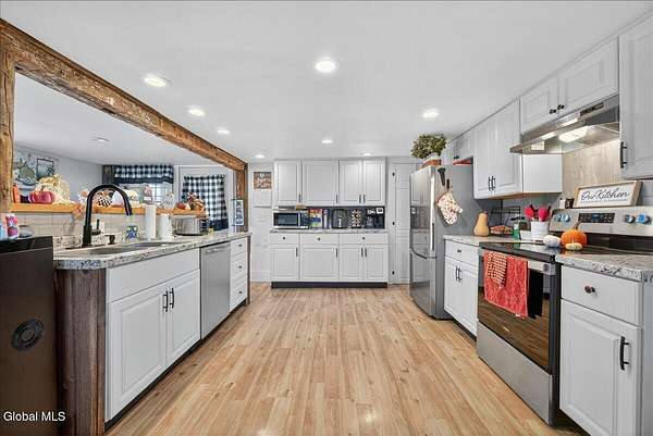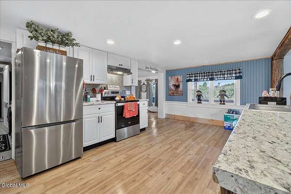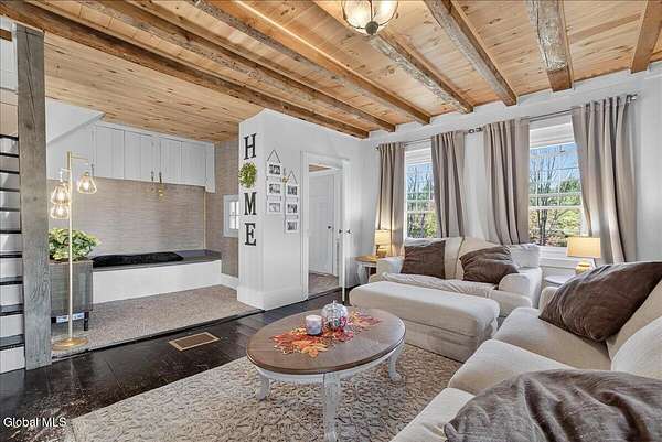 Welcome to your homestead! This circa 1843 Greek Revival features 4 bedrooms, 2 full bathrooms, and 2,271 square feet. Beautiful interior updates give you that modern farmhouse feel! You'll love the 6.5 acres, pond, barn, and chicken coops. Move right in and start your homestead! Sellers have done tons of recent updates including a new roof (2024), many new windows, fencing, and gutted and refinished 3 bedrooms. A third bathroom off the primary bedroom is plumbed and ready for you to finish. Features: convenient first floor laundry, 2 charming and spacious screened in porches, wood stove in the kitchen that can also be used for cooking. Highly rated Brunswick school district. Perfect location, 20 minutes to Bennington, VT, 30 minutes to Williamstown, MA, easy commute to the Capital District.
