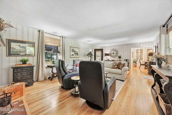Located high and dry on high ground at one of the widest parts of the river. Solid and recently inspected bulkhead means peace of mind living on the river with spectacular and ever-changing views. Sit on the new back deck with your morning coffee or evening glass of wine and the view of the river. The property is surveyed as two possible parcels. The existing home sits toward the street and the property behind it offers the option to build another home for a family compound. Or the current home could be sold or leased. How about a resort retreat at home with a pool, and casita? The possibilities abound! The existing home oozes classic cottage charm and the two wood burning fireplaces promise soothing winter evenings. Hardwood and tile flooring and finish details throughout that simply do not exist much anymore. New renovations that flow with the original character of the home. The roof is five years old and the AC is twelve
