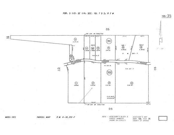 Rare opportunity to own approximately 6 acres (261,360 sq ft) of prime land in the scenic heart of Silverado Canyon. Located directly across from Silverado Creek along paved Silverado Canyon Road, this expansive parcel offers beautiful mature trees, natural terrain, and picturesque canyon and creek views. Situated in an unincorporated area of Orange County and zoned Agricultural Rural, this property allows for a variety of potential uses, including the development of a custom single-family residence. With a minimum 4-acre requirement for certain residential and agricultural uses, this 6-acre parcel exceeds the size threshold offering flexibility for a private estate, equestrian facilities, hobby farm, or additional structures. The property backs to Cleveland National Forest, providing exceptional privacy, open space, and direct access to miles of hiking and nature. A truly unique setting that combines rural tranquility with accessibility. Large, agriculturally zoned parcels of this size in Orange County are rarely available. A remarkable opportunity to create your custom canyon retreat.
