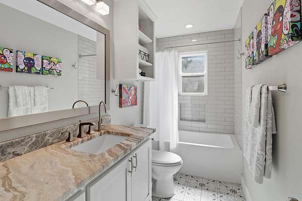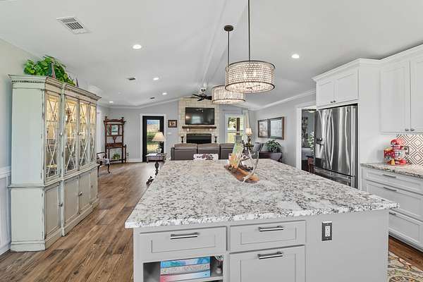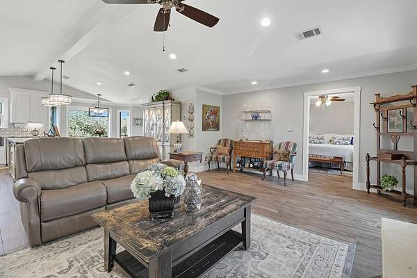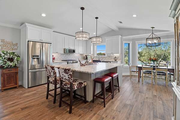 Lake Buchanan Waterfront Retreat - Fully Reimagined & Move-In Ready! This one-of-a-kind waterfront property on Lake Buchanan East perfectly blends modern comfort with relaxed lake living. Originally built in 1986, the home was completely taken down to the studs and rebuilt in 2018 - including all new plumbing, electrical, roof, HVAC, and finishes throughout. This one-level home boasts a vaulted living room with center beam and wood burning fireplace anchoring the open-concept living with kitchen area featuring a gas range, sueded granite countertops, custom soft-close painted cabinetry, delightful pendant lighting over the main island/breakfast bar with tucked-in seating and tile floors throughout. The split floor plan offers a primary suite with a wrap-around walk-through closet connecting directly to the laundry room. Additionally, two bedrooms and one bathroom round out the home. The separate guest apartment includes its own washer/dryer, softener system, and full bath-ideal for guests, multigenerational living, or short-term rentals. Upstairs, you'll find additional sleeping space, a sitting area, and space to add a half bath, if desired. Outdoors, enjoy multiple covered carports for boat/RV storage, a workshop in garage, and storage shed. Two septic systems (one per structure) are each sized to allow an additional bedroom. The property features a private boat launch and calm cove frontage-perfect for kayaking, fishing, and small boats. Great water levels right now and priced to sell at $798,000!