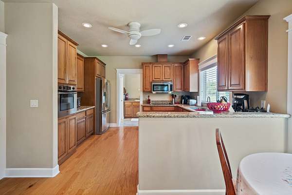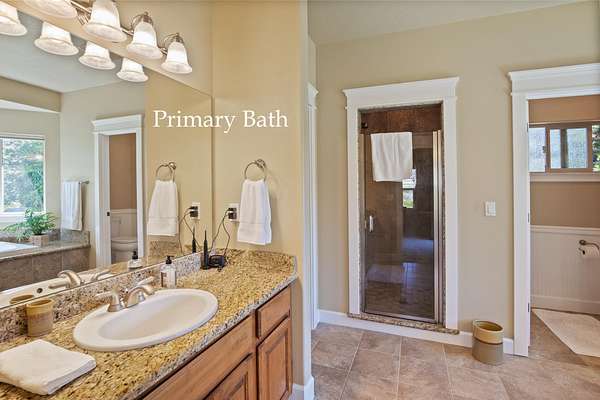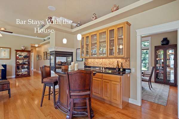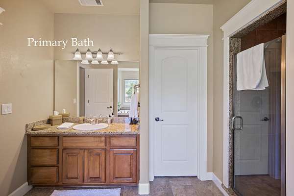 - Ceiling Fan(s), Double Vanity, Enclosed Toilet(s), Granite Counters, High Speed Internet, Linen Closet, Open Floorplan, Pantry, Primary Downstairs, Shower/Tub Combo, Smart Thermostat, Tile Shower, Vaulted Ceiling(s), Walk-In Closet(s), Wet Bar, Wired For Data, Wired For Sound