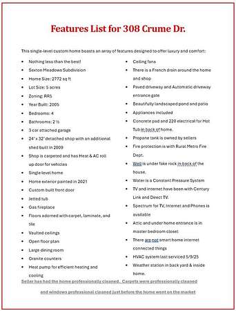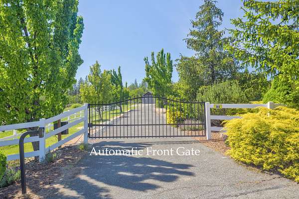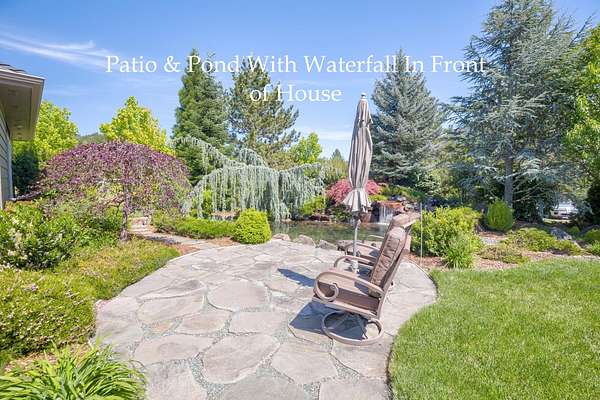Discover the perfect example of luxury living in the coveted Sexton Meadows Subdivision in the North Grants Pass area. This 2005 custom-built, single-level home, set on a sprawling 5-acre lot, offers 2772 sq ft of elegant living space with 4 spacious bedrooms and 2 1/2 baths. Featuring vaulted ceilings, an open floor plan, and a large dining room, this residence is designed for comfort and entertaining. Enjoy modern amenities such as a heat pump, granite counters, jetted tub, gas fireplace and a variety of flooring options including carpet, laminate, and tile. The property also includes a 3-car attached garage, a 24' x 32' detached shop with an additional shed, and a beautifully landscaped pond and patio. Appliances are included, along with a custom-built front door and a gated, paved driveway. High producing well. Schedule a viewing today!. Easy freeway use just 11 minutes to town. Make this dream home yours and enjoy the serenity and sophistication it brings.