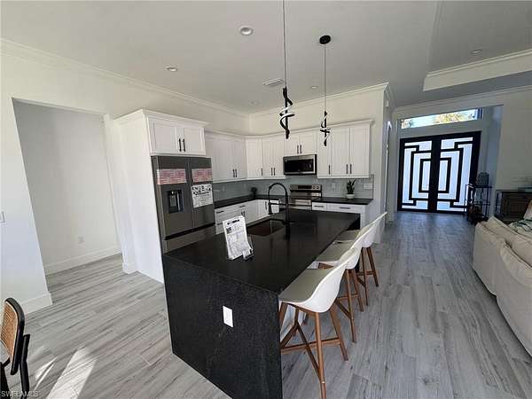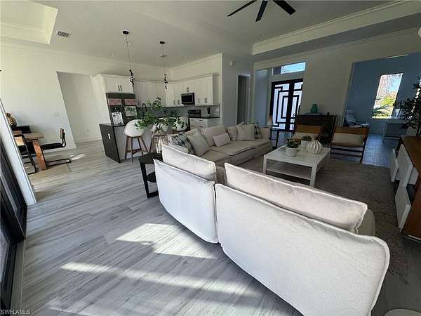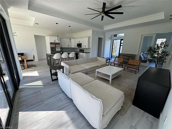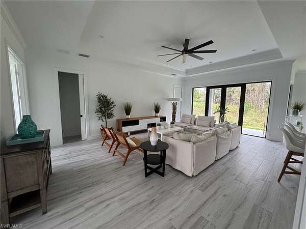 Amazing home being built in a 2.5 acres lot, in the area of Golden Gate Estates, will feature 3 bedrooms + Den, 2.5 bath, & 2 car garage! Living area of 1,900 sq.ft and a grand total of 2,627 sq.ft. Upgrades include wood plank porcelain tile throughout, crown molding, quartz countertops, stainless steel appliances, and solid wood cabinets! The living room and master suite will boast tray ceilings. Master wing will feature an oversized bedroom, 2 spacious Closets, double vanity, and glass door enclosed shower. The outside of this home will not disappoint either with a Summer Kitchen and a beautiful landscape, auto sprinkler system, and a large lanai. Impact resistant windows/doors! Your brand new home will be ready in August 2025! *Photos are from a previous same model home.