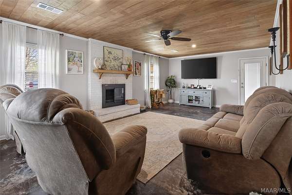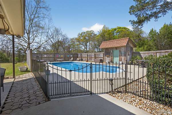 Welcome to this beautifully renovated brick ranch-style home, originally built in 1989 and thoughtfully updated for modern living. Offering 1,625 square feet, this 3-bedroom, 2-bath home blends timeless character with modern upgrades throughout. Inside, you'll find an inviting layout featuring updated finishes, Tile flooring in kitchen and bathrooms, LVP flooring in the hallways and bedrooms. A cozy wood-burning fireplace that anchors the living space. The kitchen is equipped with gas appliances, including a newer stove (less than a year old), and features granite countertops that continue into both the guest and main bathrooms. The primary suite offers a unique and functional layout, featuring a separate vanity area with sink leading into the main bathroom, which includes an additional sink, shower, and toilet space. Major updates include a new roof installed last summer, and this home features a gas hot water system, providing peace of mind and efficiency. Step outside to enjoy your private backyard retreat, complete with a saltwater pool that is partially enclosed with privacy fencing and secured with a gated area for added safety. The pool house not only houses the pump system but also offers ample storage space. Additional exterior features include a 2-car carport and an impressive 48x36 pole barn, perfect for storage, equipment, or workshop use. This property offers the perfect combination of comfort, functionality, and outdoor living-ideal for everyday life and entertaining alike.