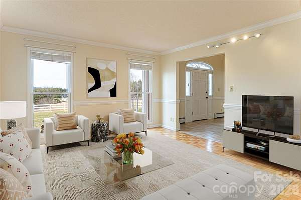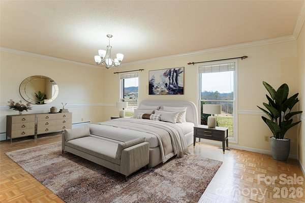 Set on more than 2 private acres with sweeping, layered views of the Blue Ridge Mountains, this Southern Colonial delivers timeless design. The setting makes an immediate impression, with classic symmetry and a welcoming approach that feels both refined and grounded. Inside, the floor plan is exceptional, open, intuitive, and built for real living. Oversized rooms are filled with natural light and framed by mountain views throughout. Each bedroom is generously sized and features its own en suite bathroom, creating true private retreats. The layout flows effortlessly, supporting both everyday comfort and larger gatherings with ease. Mornings begin with mist rolling over the mountains; evenings end with sunsets that stretch across the ridgeline. The attached garage plus a massive detached garage offer rare flexibility ideal for multiple vehicles, hobbies, storage, or workshop space. Outside, the land provides room to breathe, gather, and unwind, with open skies and fruit trees. The mountains here aren't just scenery, they're part of daily life. Private, well-built, and thoughtfully designed, this is Leicester living at its best just a short drive to Asheville, with open-use zoning and no rental restrictions.