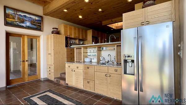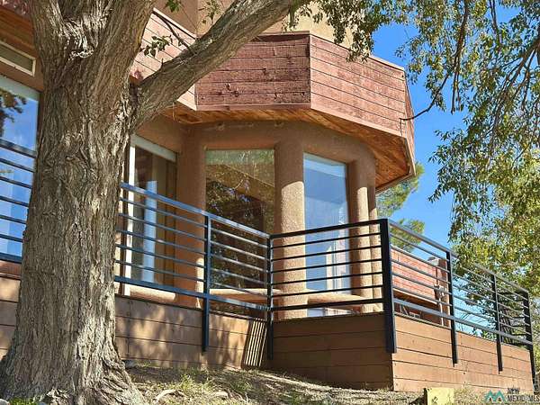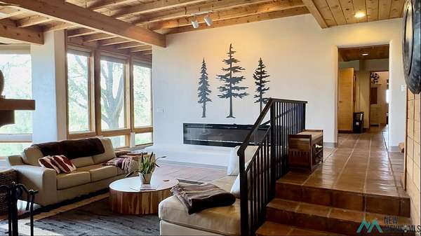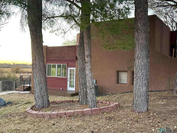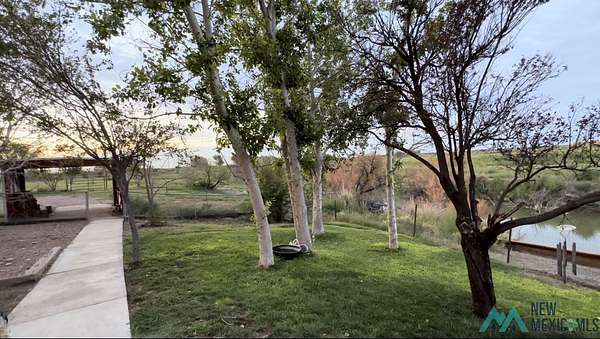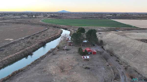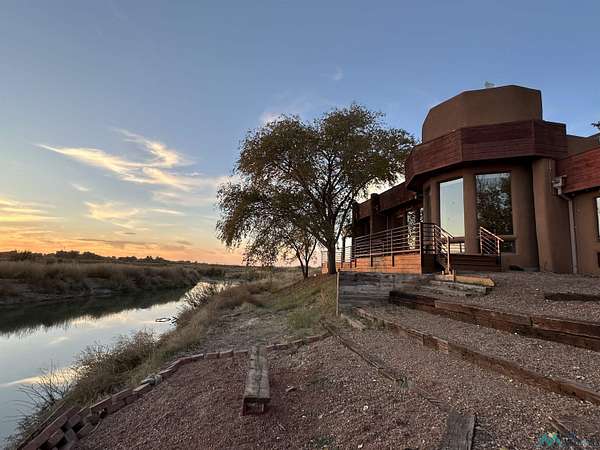 This river front property on the year-round flowing Berrendo Creek is the perfect combination of New Mexico aesthetics and rural living. Set on 4.96 acres, this is a unique opportunity to own one of the few properties in the area with direct waterfront access. Step inside to discover a multi-level floor plan, the authenticity of original adobe walls, Saltillo tile floors, and large windows overlooking the river. The kitchen has custom-built wood cabinets, smart oven, large island, and coffee bar with additional refrigerator. The rough-cut wood beam ceiling adds unparalleled rustic charm to the living room which provides warmth from a conventional fireplace. The master bedroom is designed with a kiva fireplace, large bathroom and walk-in cedar-lined closet with added built-ins, while a guest bedroom includes a spacious loft with new carpet. Unwind on the new wrap-around deck that overlooks the river surrounded by irrigated farmland or enjoy fishing off the bank for seasonally stocked trout. The irrigation system has been updated and automated for year around convenience. In addition to the attached 2 car garage, a separate metal barn with shop provides ample storage, project space, and electricity. A whole house water filtration system has been installed along with an under-sink reverse osmosis, updated hot water heater, and instant hot water heater in the kitchen. Whether you are looking for a peaceful retreat, a space to cultivate your own land, or a property with unique architectural character, this home has it all!! Situated in a most desirable location, it is a rare opportunity to own river front property in Roswell, NM. Do not miss your chance to own a riverside oasis!!