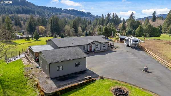 Experience the pinnacle of valley living in this breathtaking, immaculate multi-section manufactured home, perfectly positioned on nearly 5 sprawling acres in the heart of the breathtaking Washougal River Valley. This is the one you've been waiting for-a residence that commands rest and relaxation through its pristine condition and romantic, sun-drenched atmosphere. Every inch of this expansive home radiates pride of ownership, boasting soaring natural light that illuminates the stylishly updated flooring and fresh, modern paint. Peace of mind is built-in with a newer roof and high-efficiency HVAC system, ensuring your sanctuary is as functional as it is beautiful. Step outside to your own private paradise, where lush, emerald pastures roll toward a serene pond, all framed by captivating valley views. The outdoor amenities are unrivaled, featuring a spacious detached garage, a functional barn for your rural dreams, a dedicated shed for storage, hobbies, or your own vision, and an inviting covered patio perfect for year-round entertaining. Whether you are watching the morning mist rise over the pasture or enjoying the absolute silence of your private acreage, this home offers a rare blend of rural living and meticulously maintained charm. Discover the lifestyle you deserve in a home that truly sparkles and enjoy the conveniences of being just minutes away from the Columbia River Gorge recreation and all it has to offer!!