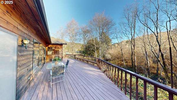Tranquil Cedar Retreat with 3 Bedrooms, 2 Baths, and an Expansive Workshop with approximately 12' door. Nestled among the trees in a peaceful wooded setting, this custom cedar home offers the perfect blend of privacy, comfort, and nature's serenity. Just five miles or less from the ocean, yet free from the coastal fog, you can enjoy sunny mornings on the spacious deck, sipping your favorite drink while listening to the soothing sounds of the Winchuck River and a gently flowing creek nearby.Step inside to an open-concept great room, bathed in natural light from large windows that bring the outdoors in. A brick hearth with a wood stove creates a cozy focal point, complemented by a heat pump for year-round comfort. The kitchen features ample cabinetry, built-in appliances, and a seating island perfect for entertaining. The primary suite is a private retreat with a walk-in closet and an attached bathroom, complete with a jetted tub and separate walk-in shower. The second bedroom offers a single-lit closet, while the third bedroom surprises with its generous size and double-lit closets. For added convenience, the attached two-car garage includes a small room with a toilet and ample storage. Outdoor enthusiasts will love the ample parking for RVs or boats. A huge workshop (24' x 36') provides room for hobbies or projects, and a tidy greenhouse invites gardening year-round. With its tranquil creekside setting, spacious interiors, and thoughtful amenities, this unique home is rare. Ask to see the Matterport Professional 3D Tour, which covers the inside and outside of this home, and also ask for the floor plan.