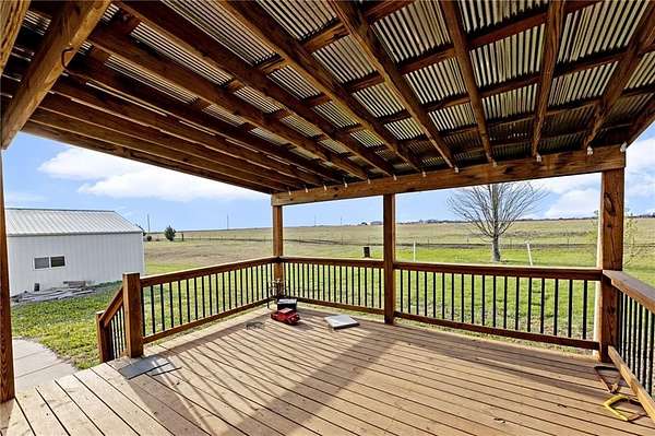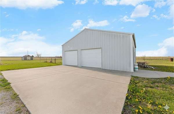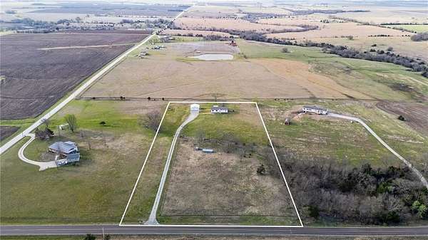 Located in the sought-after Central Heights school district, this 5-acre property offers the perfect mix of country living and convenience on a paved road. Ideal for those looking for acreage, animals, or a hobby setup, the property is already fenced and ready to go. The home features a full unfinished basement with egress windows, offering excellent potential to finish and add value with additional bedrooms or living space. A 30x40 detached garage/shop provides plenty of room for vehicles, equipment, or projects. Enjoy wide-open views and beautiful Kansas sunsets from the covered back deck/porch. Inside, a spacious family room creates a comfortable space to relax or entertain. If you're searching for acreage in Central Heights with a shop, fenced ground, and room to grow, this is one you don't want to miss!
