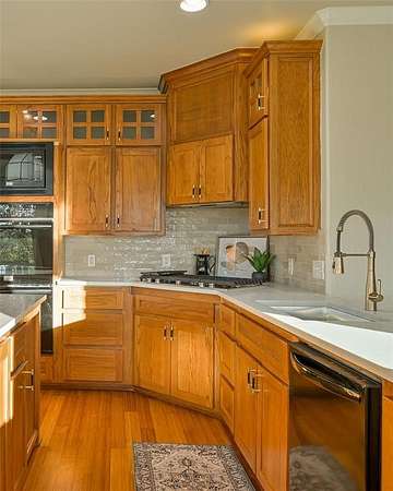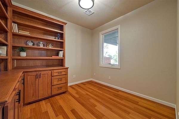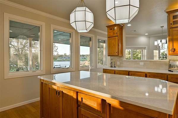 Tucked away at the end of a quiet street in a gated community, this beautifully remodeled home sits on over 2.3 peaceful acres overlooking the neighborhood pond. With 3 generous bedrooms, an office and plenty of open space, it's the kind of property that instantly makes you exhale. Every inch has been updated--from the new roof and fresh paint to the bamboo floors, quartz countertops, modern lighting, and stylish mirrors. The open kitchen with double islands is the perfect place to spend holidays and gatherings with family and friends. The partial wrap-around porch is the perfect spot to enjoy your morning coffee or to unwind while watching the sun set over the water as the day slows down. The pond is fully stocked for fishing, and the yard features fruit trees and a play set ready for outdoor fun. Part of the acreage is fenced, including a separated dog area, giving you a great balance of open land and defined space. If you've been looking for a home that feels like a retreat but still offers the comfort of a close-knit community, this is the one. Be in before the holiday! Open Sunday Nov 16th 2-4 pm.