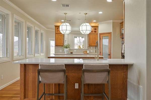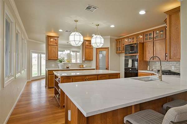 Tucked away at the end of a quiet street and bordering the neighborhood pond, this custom-built, recently remodeled home offers 2.3 acres of peaceful, private living in a gated community. Imagine mornings with coffee overlooking the water and evenings filled with breathtaking sunsets in your own serene retreat. Designed for both comfort and entertaining, this 3-bedroom, 2-bath home also features a dedicated office - perfect for working from home or creating a private study space. The heart of the home is the stunning kitchen, complete with an oversized island that anchors the space and invites gathering. Whether hosting holidays or casual get-togethers, this kitchen was made to bring people together. Expansive Renewal by Andersen doors and windows flood the home with natural light and frame beautiful views of the surrounding landscape. Thoughtful upgrades include a tankless water heater for endless hot water and modern efficiency, elegant quartz counter tops, completely repainted inside and out. A spacious three-car garage provides ample storage for vehicles, hobbies, and outdoor gear. Build a shop in the back for additional space for hobbies. Set within a secure gated community for added peace of mind, this property offers the rare combination of privacy, luxury, and connection to nature - all just minutes from everyday conveniences.
