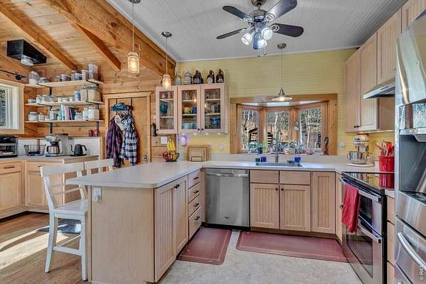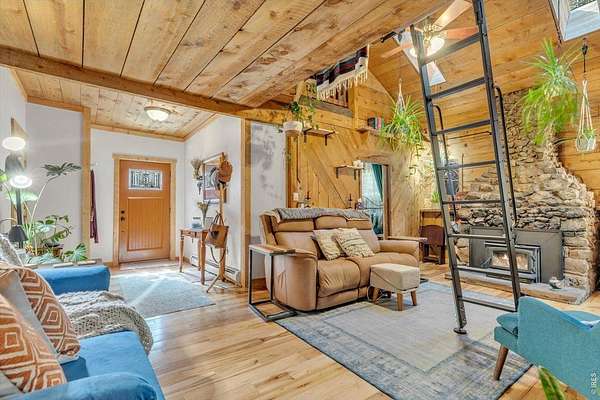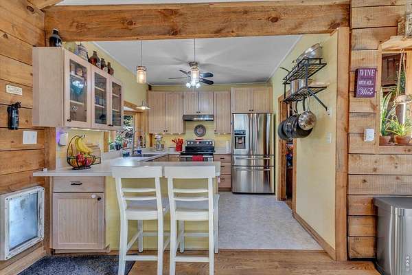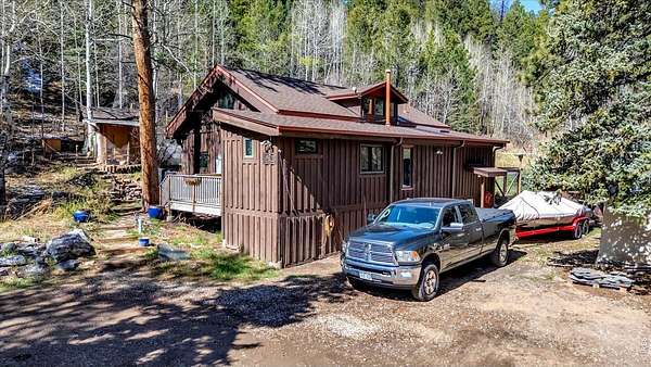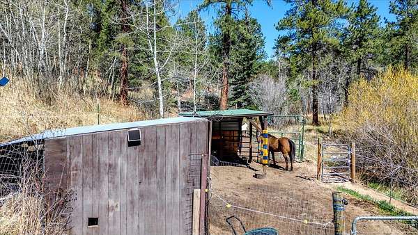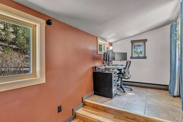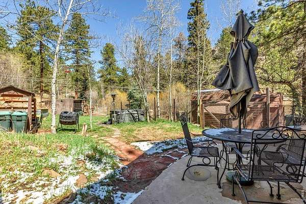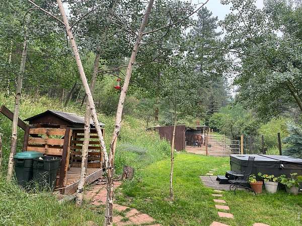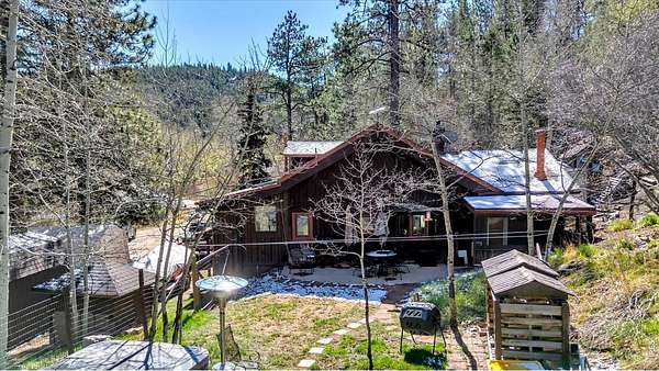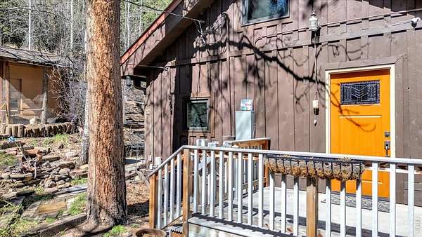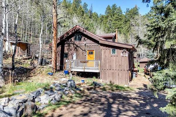 Set on 4.6 acres with 600 feet of stream frontage, this exciting property offers a rare blend of convenience and historic charm. The beautifully restored cabin features thoughtful updates throughout, including newer electrical, flooring, windows, boiler, and roof. A cozy fireplace anchors the inviting living room, while a 250 sq. ft. loft (not included in total square footage) adds flexible space and character. The modern kitchen and dining area flow seamlessly, creating a warm and welcoming environment for both everyday living and entertaining. Two lovely bedrooms and a spacious office provide comfort and versatility. Outdoors, the property offers two patios, a hay barn, a shed, and additional storage buildings-all set within fully fenced grounds ready for your barnyard companions. Despite its wooded seclusion just off a paved road, you're within walking distance to local shops and only seven minutes from the stunning trails of Golden Gate Canyon State Park. A level circular driveway ensures easy access year-round, and the location is ideal-just 35 minutes from Boulder, Golden, and Eldora Mountain Ski Resort.