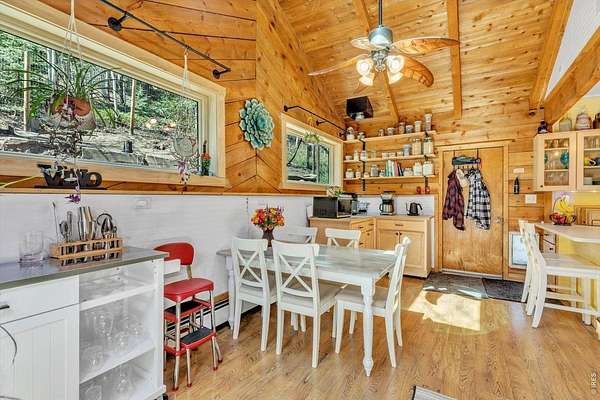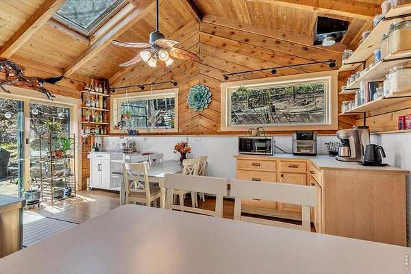 - Bay or Bow Window, Cathedral Ceiling(s), Eat-In Kitchen, Natural Woodwork, Open Floorplan, Separate Dining Room, Skylights, Washer/Dryer Hookup, Wood Windows