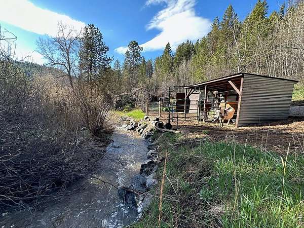 - Abuts Stream/ Creek/ River, Deciduous Trees, Evergreen Trees, Level, Native Grass, Outbuildings, Paved, Sloping Lot, Stream(s), Unincorporated, Wooded