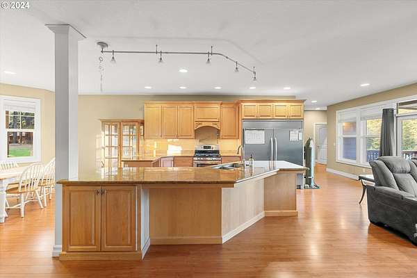 This dream property is located in the beautiful countryside, under an hour from Portland Oregon. This incredible homestead offers you more than you can imagine. Almost twenty fully fenced acres of serene nature with two ponds, and a rippling creek - complete with its own creekside tiny house. Outstanding views and a plethora of local wildlife. This property is a true paradise retreat! Main home and additional attached home are connected through an interior breezeway. Inside the custom built homes, you will find features that will WOW you at almost every turn. As you enter the foyer you'll be greeted by a stunning chandelier and the spectacular views offered from the floor to ceiling windows in the main living room. Explore this immaculately designed house and be amazed by the thoughtfulness and safety planning that went into the design. Primary bedroom on main level boasting two hidden walk in closets, and the ensuite of your dreams. Relax in the tub soaking in the soft light under the chandelier, all while taking in gorgeous forest views. The upper and lower levels are equally outstanding. Upstairs you'll find an additional four bedrooms and two full bathrooms. Downstairs is complete with a home gym and additional living area with it's own double door entrance. Now, let's pass through the interior breezeway to the attached second home. Primary bedroom on main with ensuite, gourmet chef's kitchen, and additional living and sleeping space upstairs. Here you will also find the attic. Above the interior breezeway, there is incredible storage space. You will not run out of room here. Outdoors, don't miss the 2 stall animal barn, TWO full RV hook up sites, the shop (power, water, & upgraded welder electric plugs), exterior office (fully insulated w/power), and canning room (power, water & sink). Treehouse, fire pit, horseshoes. Multiple opportunities for income producing ADU's. This property has endless possibilities. Schedule a tour today and come see for yourself!