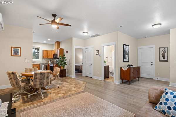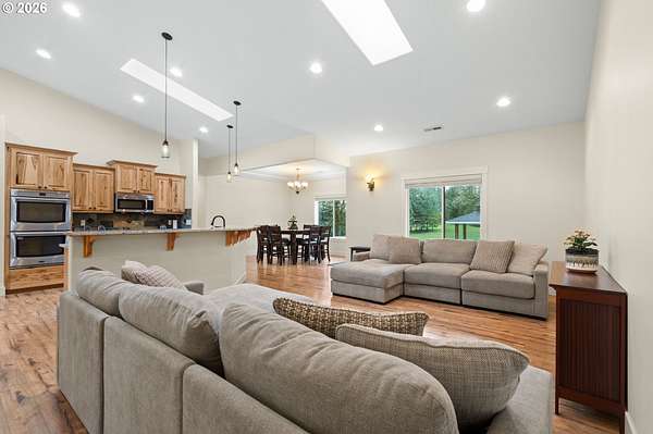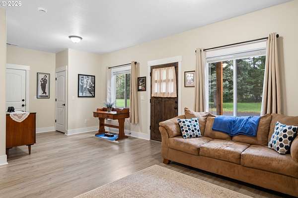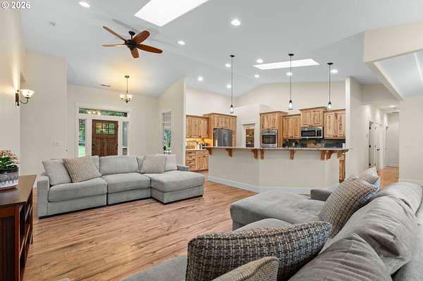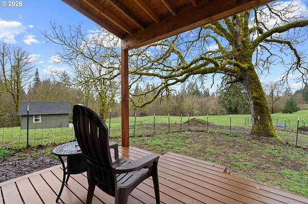 Discover the perfect blend of space, comfort, and versatility on this stunning 10-acre property, offering peaceful surroundings and exceptional living opportunities. Built in 2014 and meticulously maintained, the main home feels like new and features 4 bedrooms plus a large office/media room, 2 full bathrooms, and a spacious laundry room with storage. The primary suite is a true retreat with a soaking jetted tub, expansive tile shower, double vanities, tile flooring, and a custom walk-in closet. The open-concept design showcases soaring ceilings, skylights, LVP flooring, and a bright kitchen with granite countertops, under cabinet lighting, double ovens, and a spacious walk-in pantry. Step outside to enjoy the covered patio, charming gazebo with fire pit, frequent wildlife sightings and mature fruit trees! Home is also wired for portable generator! The property also includes a separate 1 bed, 1 bath 784sq ft ADU, with an attached 976sq ft oversized 2-car garage, full kitchen, pantry, washer/dryer hookups, wired for generator, water heater, private covered patio, and fenced yard. Ideal for multi-generational living, guest quarters, private workspace, or potential rental income, this property offers flexibility rarely found. With both the mired for portable generators, the seller's truly made this home a special opportunity to own a turnkey acreage property that offers both privacy, safety and possibility.