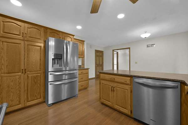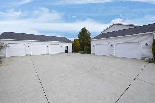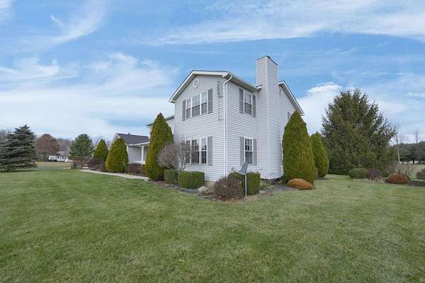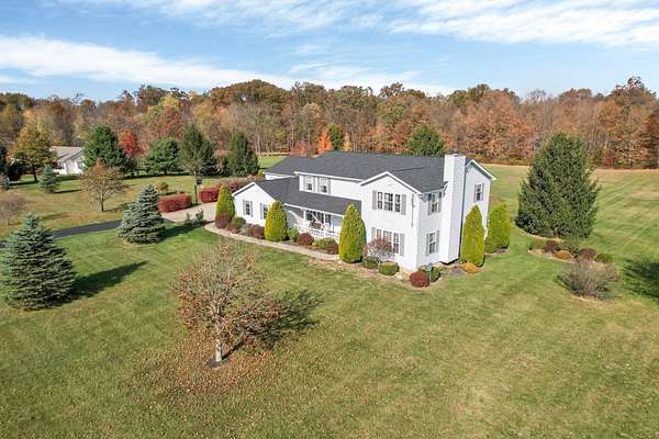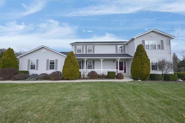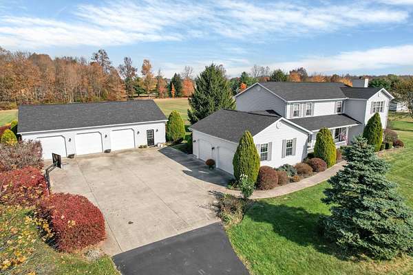 Welcome to this beautifully maintained home! Situated on almost 5 acres, beautifully landscaped, and only 8 minutes to I71 (27 minutes to Polaris). The finished basement has additional living space, a fireplace, and 2 extra bonus rooms which makes the total living space almost 4000 square feet! This home features granite countertops in the kitchen, 36'' solid oak doors throughout, 2 reverse osmosis systems, insulated garage doors (new in 2019). The additional detached 3 car garage has office space for the ''work from home'' person. The roof was new in 2021, as well as the hot water heater. New sidewalk out back was done in 2021 as well. The blacktop driveway was new in 2022 and recoated in 2023. The composite deck out back is perfect for entertaining and enjoying the peaceful country surroundings and is low maintenance. Off the kitchen is a beautifully tiled sunroom. 1st floor laundry room and a den or office that could be another bedroom. All appliances are included! This home is just waiting for new owners to make new memories. Open house on July 12 from 2-4pm. Come and see this amazing home!