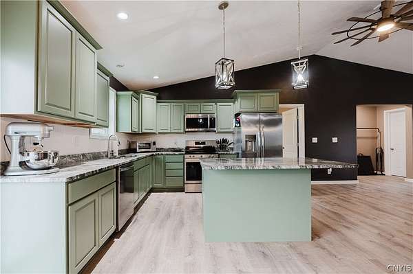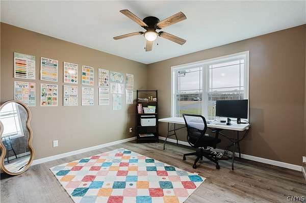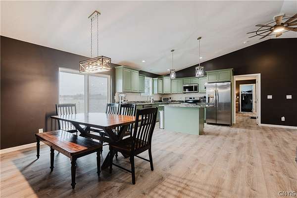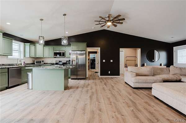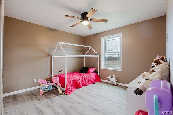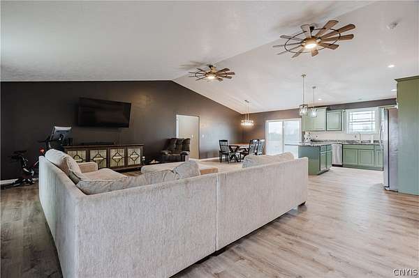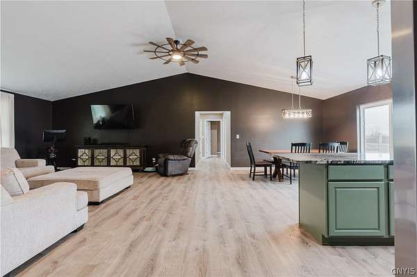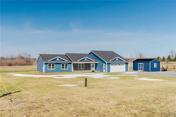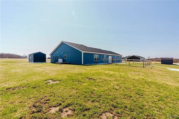 Welcome to your dream home! This gorgeous 2024-built ranch is perfectly situated on a peaceful 2.27-acre lot in the highly desirable Rockbrook Estates. Located just a short drive from Watertown, Fort Drum, and the Thousand Islands, this property offers the ideal blend of country tranquility and convenient access to everything you need. Step inside to discover spacious, single-story living at its finest. The open-concept kitchen, living, and dining area feature vaulted ceilings and a tall two-story apex ceiling in the living room, creating a bright and inviting space perfect for entertaining or relaxing with family. Modern premium finishes throughout, and new updates including fresh paint and in-floor heating, ensure comfort and style in every room. The home offers four spacious bedrooms, including a luxurious primary suite with a private en-suite bath and walk-in closet. Two beautifully appointed bathrooms, smart layout, and pristine finishes throughout make this home move-in ready. Outside, enjoy Rockbrook Estates' quiet, dead-end road, perfect for peaceful country living. A brand-new 12x20 North Country Storage Barns shed is included, and a recently added fence keeps pets safe and secure. All mechanicals are less than two years old, providing peace of mind and modern efficiency. The home and property are both in excellent condition and very well kept! This home truly combines class, comfort, and modern amenities in a private, newly developed area. Don't wait - schedule your private showing today and make 30813 Rockbrook Estates your forever home!