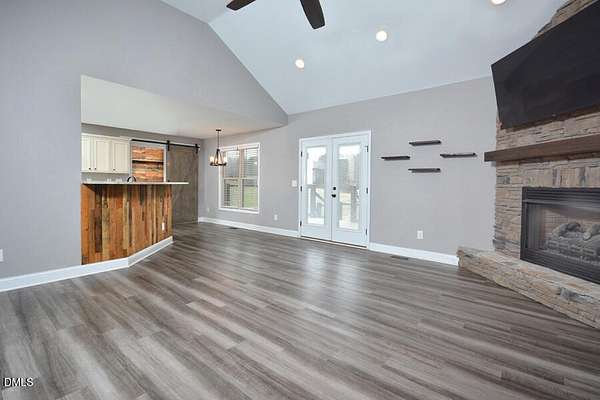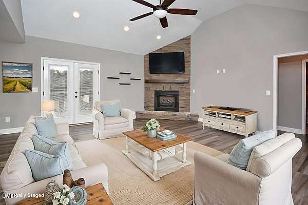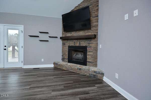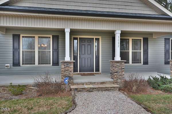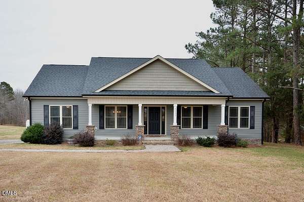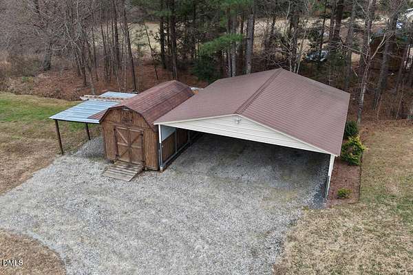 Gorgeous, MOVE IN READY, home on a 1.59 acre lot in a rural setting. Detached 2-car 25x24 carport, 15x9 storage shed, and 15x10 'lean-to' storage for your lawn equipment or ATV. 29' covered front porch with partial stacked stone columns. LVP floors in all the main living areas (living room, kitchen, dining, and hallways). Corner gas log stone fireplace with wood mantel and TV above. Vaulted ceiling in the living room. Open kitchen and breakfast area with a serving/breakfast bar with stained wood wall beneath. Granite kitchen counter-tops, stainless steel appliances, pantry closet, and recessed lighting. Sliding barn door to the laundry room with a stained ship-lap style wall. Spacious master suite has a large walk-in closet and private bath with an oversized shower with a rainfall shower head and wall shower head, and double Granite vanity. 2 guest bedrooms and a home office. Great 25x11 deck overlooks a large backyard. Some pics are virtually staged.