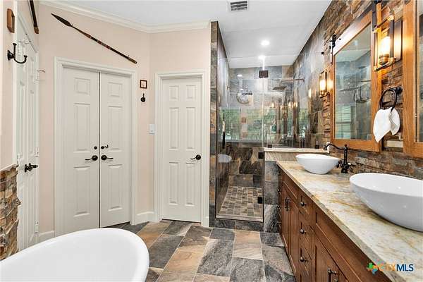 Welcome to your private, gated 8-acre retreat in the close-knit Silverado Ranches community. This wooded oasis features a 5-bed, 3.5-bath main house and a 2-bed, 1-bath apartment with its own kitchen-ideal for guests or multi-gen living. A soaring entry and grand staircase open to a sunlit family room, while the gourmet kitchen, walk-in pantry, guest-quarters kitchen, and summer kitchen offer space for entertaining. A combined laundry/mudroom with a Dutch door adds charm and function. Enjoy mornings on one of the many porches, evenings in the backyard, or lazy afternoons under the trees. The property is fully fenced with a south pasture training ring for equine enthusiasts. A 4-car garage includes an office and summer kitchen with plumbing/electricity-perfect for hobbyists or remote work. Updates include remodeled kitchens, bathrooms, and more (2021-2025). Extras: alarm/sprinkler systems, RV hookup, solar panels, 3 ponds, coop, & more. This isn't just a home-it's a lifestyle.