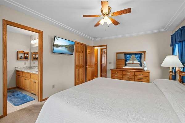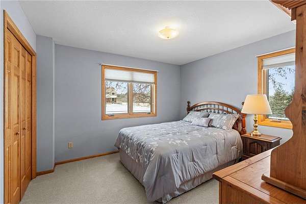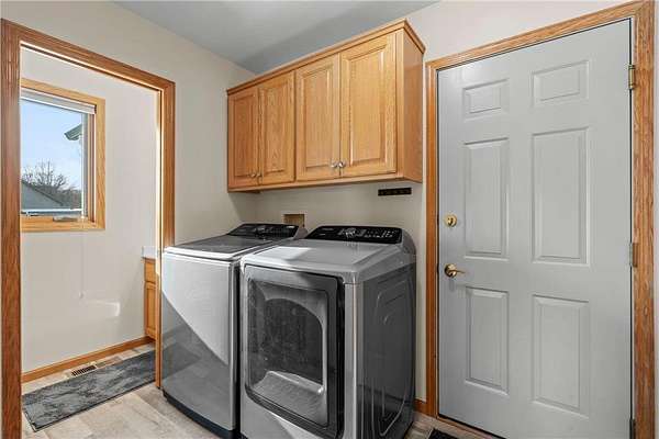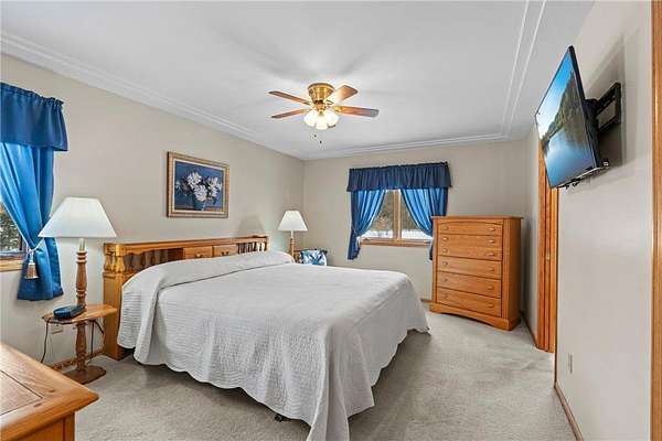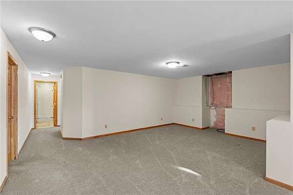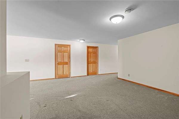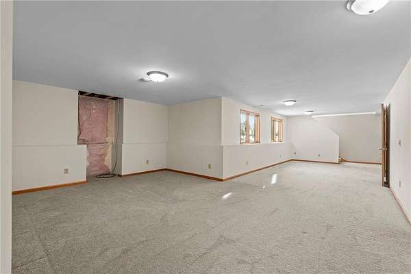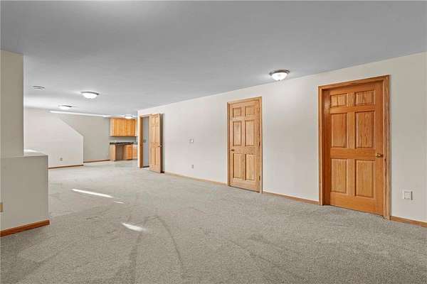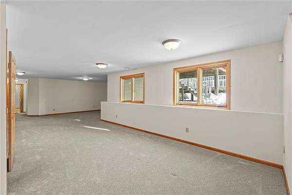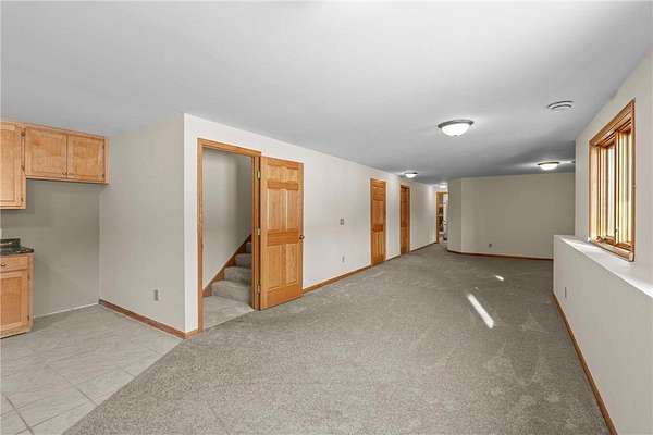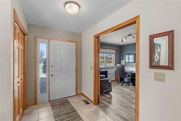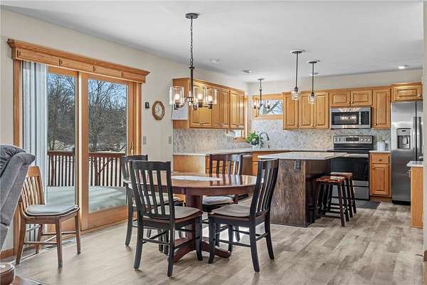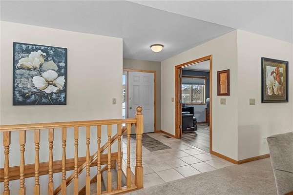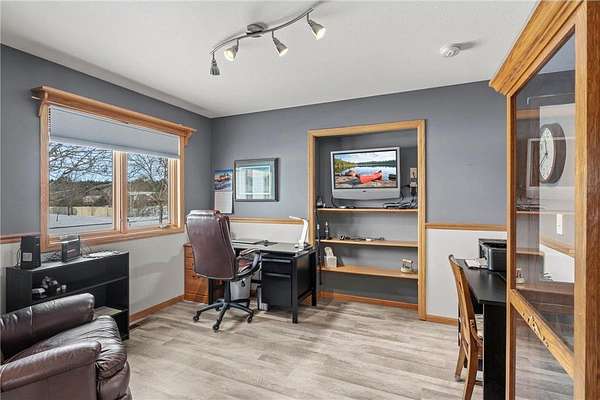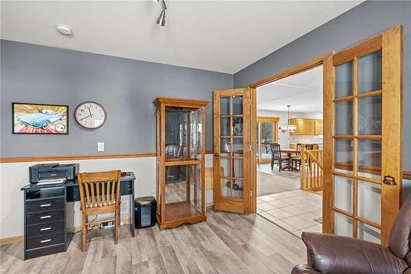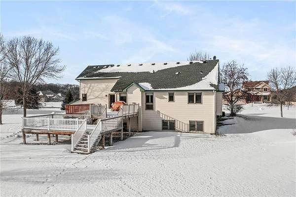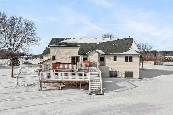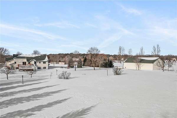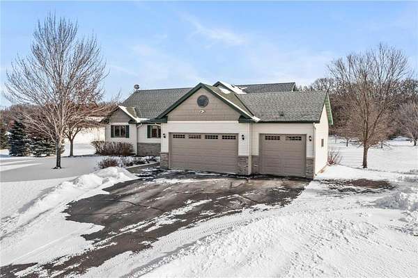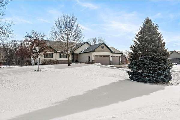 Discover this spacious 4-bedroom, 4-bathroom walkout rambler situated on an expansive 2.5-acre cul-de-sac lot. The main level offers a dedicated home office, a welcoming living room highlighted by a tray ceiling and a cozy gas fireplace, and a primary suite with a private ensuite bathroom and ample walk-in closet. Significant updates within the last 4 years include the kitchen counters, flooring, and appliances, as well as the HVAC, water heater, water softener, and air exchanger. The lower level offers flexibility for possible multi-generational living, featuring a kitchenette and separate entrance. Exterior highlights include durable steel siding, a roof replaced in 2022, apple trees, an asphalt driveway, and a heated, insulated 3-stall garage. Adjacent lot with 30x60 detached garage also available for $199,900 (MLS# 7010348).