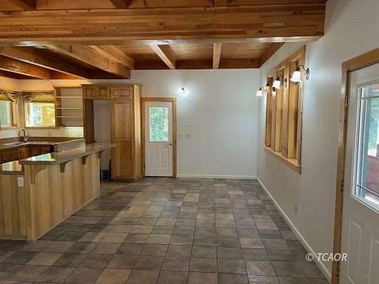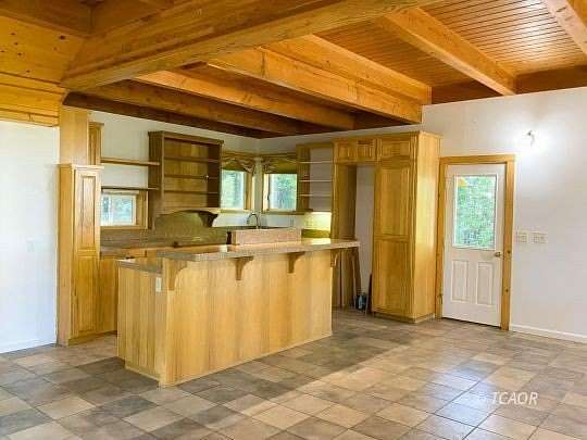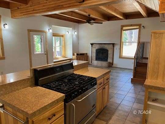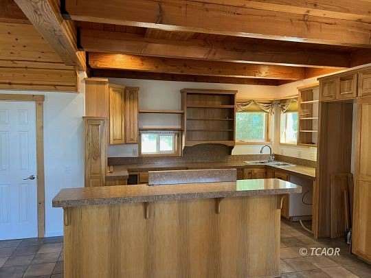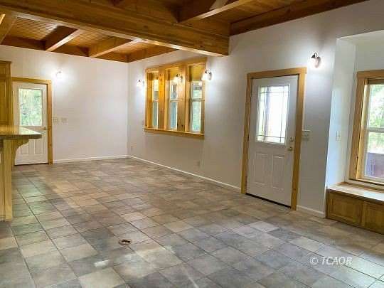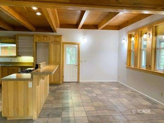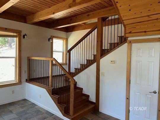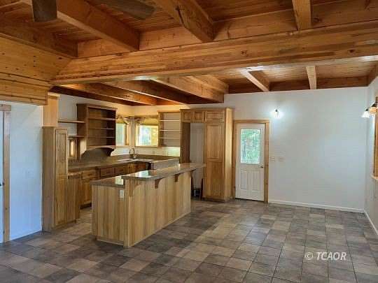This custom home sits up on the mountain and offers a gorgeous and expansive view over tree tops all the way to Shasta Bally and Bully Shoop. The setting is on 14.5 acres and features a large meadow area at the property's entrance and flat garden areas up higher around the home, plus ATV and hiking trails. Enter the home through an open sunroom into an open floor plan with 10 foot high heavy beamed and tongue & groove wood ceilings that gives it a cabin feel. Heated tile flooring keeps the home cozy. Climb the custom madrone stairs to up the bedrooms, one with walk-in closet, one with extra office space. The large main bathroom features a claw foot soaking tub and big window. Outside is waiting for your green thumb to complete the landscaping. Huge barn provides equipment storage and with some work would make an awesome shop space. The water is by a spring gravity flow, water system has 5000 gallon plus 2500 gal. overflow for fire protection. Power is Trinity PUD offering great rates. Sewer is septic system. This is a must-see property! The accuracy of information provided is deemed reliable but is not guaranteed, is subject to change and should be independently verified by buyer.