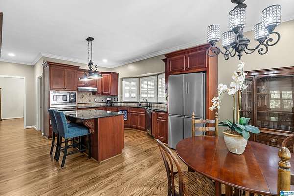 Beloved Meadowbrook offers a WELL-MAINTAINED home with privacy on almost 2 ACRES with private wooded views to observe the local wildlife! HARDWOOD floors and PLANTATION SHUTTERS throughout the main level are beautiful as is the master bedroom suite and gourmet kitchen! An enormous granite island, tons of cabinetry space, & stainless appliances will make entertaining and cooking a joy! Basement offers another entire living area, 2nd kitchen complete with washer/dryer combo, second refrigerator, sitting area, and bonus room that could be used as 5th bedroom/rec room flex space perfect for multigenerational living or entertaining. A formal dining room, living room/study, great room with cozy fireplace offer beauty & comfort. A fabulous vaulted sunroom w/Travertine tile floors & outdoor patio are perfect for morning coffee year round! 2 spacious bedrooms upstairs with full bath and 2 walk-in storage spaces. 2 car garage with plenty of extra storage. Make your showing appointment today!