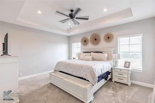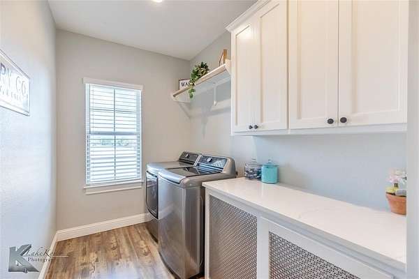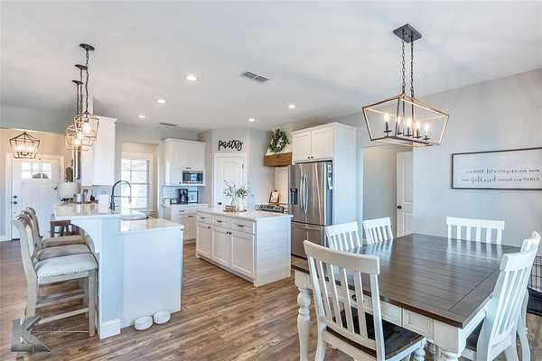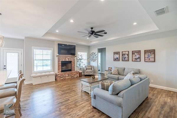 Welcome to 3085 County Road 131 in Tuscola! This beautiful 4 bedroom, 3 bath home sits on 10.5 acres in the highly sought-after Jim Ned CISD. Designed with both comfort and functionality in mind, the home offers an open floor plan with vinyl plank flooring throughout the main living areas and a wood burning fireplace that creates a warm, inviting atmosphere. The kitchen provides plenty of counter space and storage, perfect for everyday living and entertaining. Additional features include a private office, a safe room, a mud room, and an oversized laundry room that adds convenience and versatility to the home's layout. The split bedroom arrangement ensures privacy, with carpet in each bedroom for added comfort.