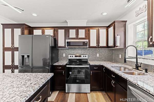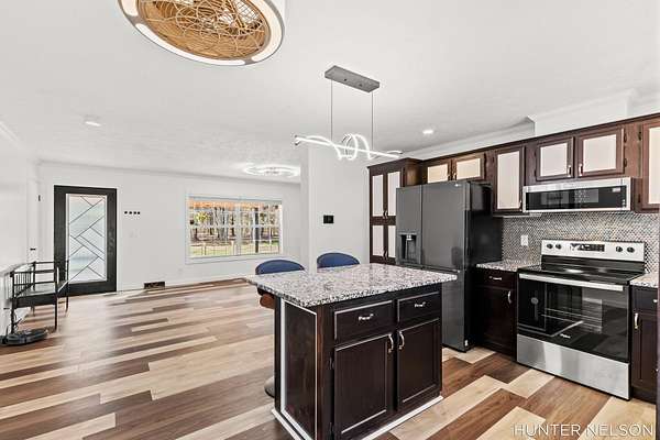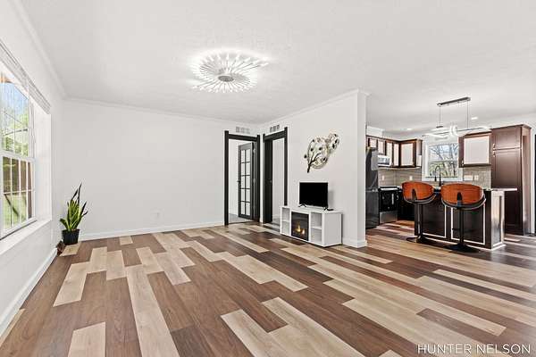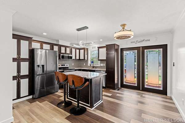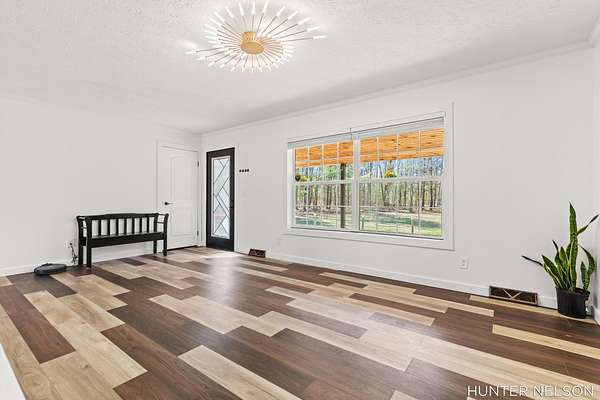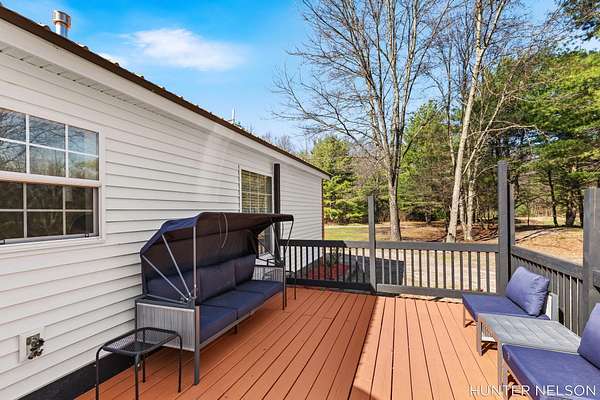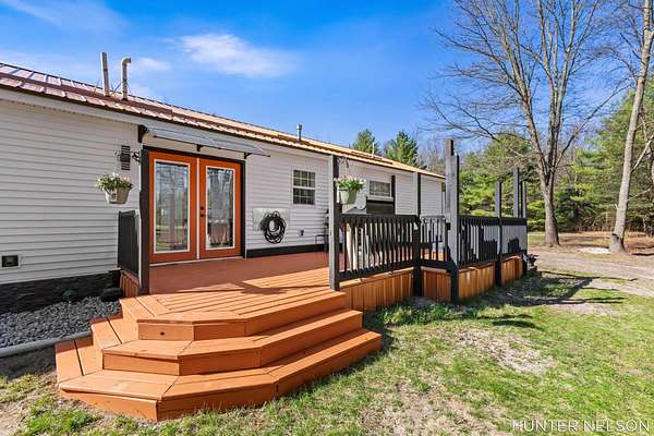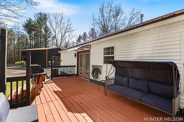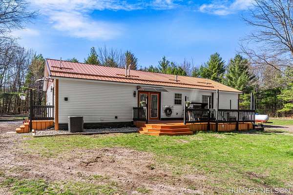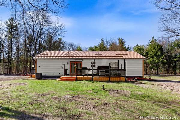 Completely remodeled 3 bed, 2 bath home set on over 4.5 private acres. This property offers the perfect blend of modern updates and peaceful surroundings. Features include a spacious 33x40 pole barn, high-end finishes throughout, and a beautifully updated kitchen with a center island. Both bathrooms showcase custom tile showers for a clean, upscale feel. Enjoy quiet mornings on the charming front porch or unwind on the back deck overlooking nature. Ideal for those seeking privacy, space, and a move-in ready home with room to spread out.