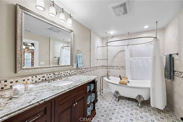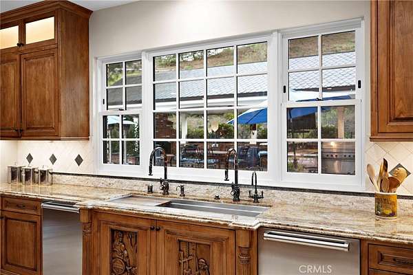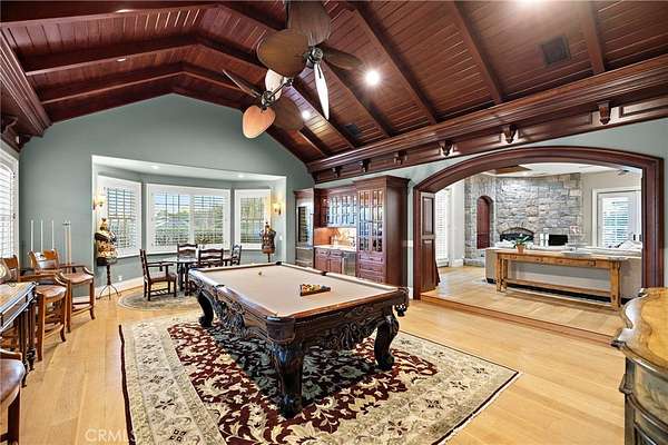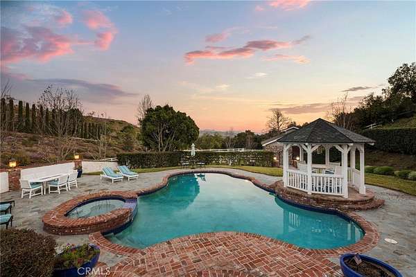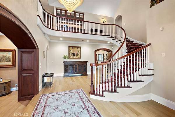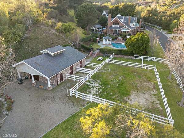 Welcome to a Premier Equestrian Estate spanning nearly Two Acres and showcasing nearly $2 Million in Upgrades in the gated community of Coto de Caza. A stunning brick exterior and private gated driveway leads to the English-inspired residence, where soaring ceilings and a grand crystal chandelier set the tone. The formal living room with a signature Marble Fireplace flows into a grand Great Room featuring Vaulted Wood Ceilings for grand-scale entertaining. At the heart of the home: a true Chef’s kitchen, a Culinary Masterpiece equipped with Three Sub-Zero refrigerators, professional Wolf Appliances, including a Built-In Grille, High-End Pot Filler, and multiple Warming Drawers. The oversized center Island showcases Hand-Carved Wood Details. Enter into the dedicated food preparation area and walk-in pantry. The main level is complete with a private Library, a Bedroom with an Ensuite Bath, and a Laundry Room with Sub-Zero refrigerator. The upper level is a sanctuary of wellness and leisure, highlighted by a Primary Suite with a private balcony that has a spiral staircase with direct access to the grounds, plus breathtaking mountain views from the retreat. The Primary Bathroom serves as a Personal Spa, spanning the long hallway, complete with a Soaking Tub, Glass Enclosed Shower Sauna, Massage Room, and a Boutique-Style Walk-In Closet. On the opposite wing, the estate transforms into an entertainer’s paradise with a Movie Theater, a private Gym with its own balcony and exterior staircase entrance, and a dedicated craft room. The outdoor grounds are equally impressive, featuring Horse Stables and a Corral alongside a pool oasis, spa, and a gazebo. The backyard living space is finished with a stainless steel Wolf BBQ and a brick fireplace, offering a serene backdrop for outdoor dining. Complete with a Four-Car Garage, this one-of-a-kind showpiece property represents the ultimate in California luxury living.