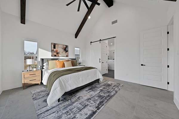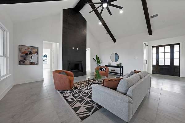 Welcome to your own slice of modern Texas luxury. Set on almost 2 sprawling acres in Celeste, TX, this newly crafted custom home blends elevated design with effortless comfort. Step inside and be instantly wowed by dramatic vaulted ceilings, designer flooring, and a show-stopping floor-to-ceiling fireplace that anchors the living space with style and warmth. At the heart of the home, the chef-inspired kitchen steals the spotlight—featuring sleek stainless appliances, quartz countertops, custom cabinetry, and an oversized island made for gathering, hosting, and making memories. The private owner’s retreat feels like a five-star escape, complete with a spa-worthy bathroom and an impressively large WIC. 3 additional bedrooms, plus a dedicated study or home office, offer space and flexibility for every lifestyle. Thoughtful craftsmanship shines throughout, from high end interior designs, spray foam insulation, security camera wiring, and a full sprinkler system. End your day on the inviting front porch or covered back patio, soaking in wide-open views and unforgettable Texas sunsets. This is more than a house — it’s a statement, a sanctuary, and a place you’ll be proud to call home. Open to seller's concessions with an acceptable offer!