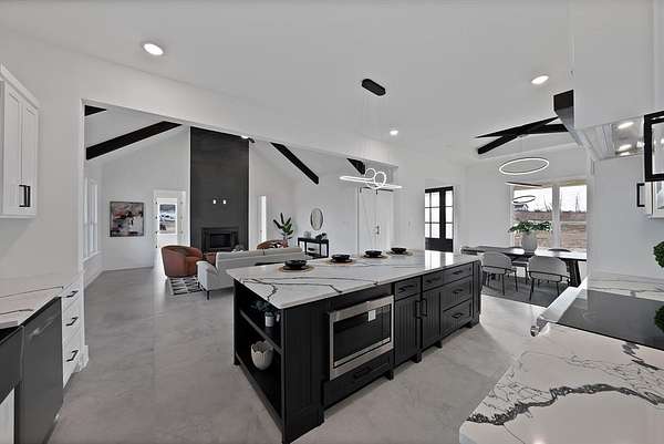 - Built-In Features, Decorative Lighting, Double Vanity, Eat-In Kitchen, Granite Counters, Kitchen Island, Natural Woodwork, Open Floorplan, Pantry, Smart Home System, Sound System Wiring, Vaulted Ceiling(s), Walk-In Closet(s)