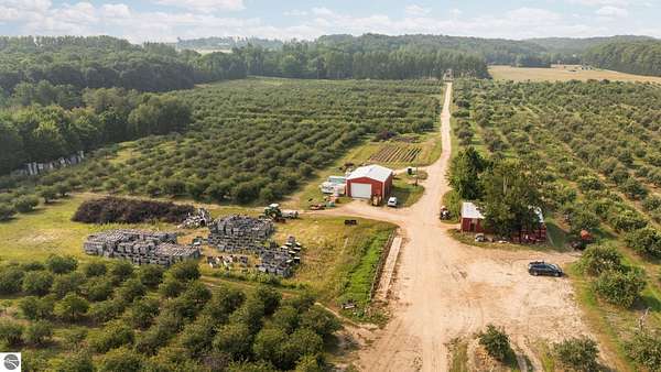 For generations, the Ocanas family has cultivated this iconic 68+ acre fruit farm on Old Mission Peninsula- a rare legacy property with uninterrupted rows of apples and cherries and deep agricultural roots in the community. Located just north of Traverse City, 3089 Swaney Road offers a unique opportunity to continue the stewardship of some of Northern Michigan's most productive and picturesque farmland. This property is protected by a conservation easement held by Grand Traverse Regional Land Conservancy, which permanently limits it for agricultural use. That means the land cannot be subdivided or developed for residential or commercial purposes, ensuring it remains farmland forever. For growers, conservation-minded investors, or those seeking a long-term agricultural asset, the conservation easement provides lasting stability and clarity of purpose. The property includes well-maintained orchards, gently sloped terrain with excellent air drainage, and multiple outbuildings for storage and farm operations. Whether you're expanding an existing business or starting a new chapter in a region known for its winemaking, AgriTourism, and farm-to-table culture, this is a place where long-term vision takes root. This is an exciting opportunity to own a protected, working farm on the Peninsula- rich with history, potential, and natural beauty.