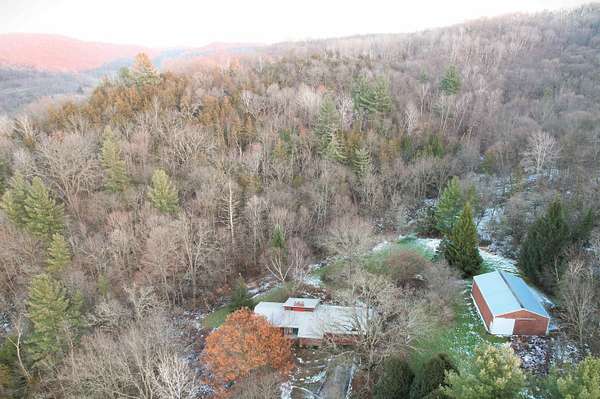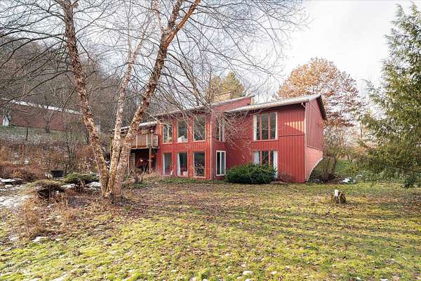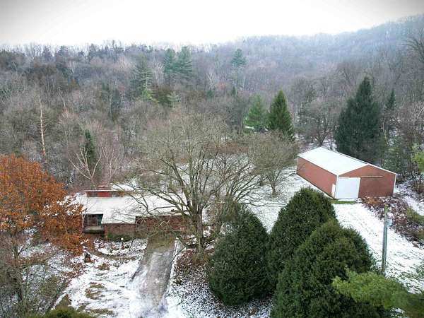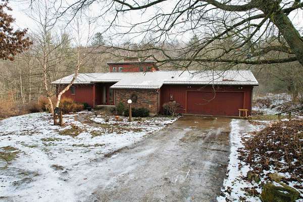 Brookside Paradise! Nicely situated on 27 private acres at the end of a quiet lane, this 3-bedroom, 3-bath home offers nearly 2,300 sq ft of living space filled with natural light from many large windows throughout. Two fireplaces add warmth and character, while the layout provides a solid foundation with opportunity to add your own updates and personal touches over time. Knapp Creek meanders through the property, highlighted by a beautiful stretch lined with mature willow trees. The land features a diverse mix of woods, open meadow, small ponds, and established trails winding to the creek - perfect for walking, wildlife viewing, or quiet reflection. A pole building provides excellent storage or workspace. Enjoy unmatched privacy, seclusion, and peacefulness with abundant wildlife includin