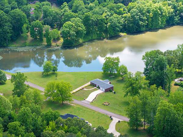 Over 460' Lake Frontage & Custom Home! Located on a park like 2+ acre lot in the desirable Cedar Lake Estates, this home was built by developer/builder & WW2 Veteran Ralph Rogers, and has so many custom touches! Custom concrete designs greet you upon driving into this well manicured/landscaped property. A formal entry w/parquet hardwood flooring leads to the large living area-connected to the sunroom-with all the water views! Plentiful custom cabinetry in the roomy kitchen, featuring all appliances, & breakfast bar. Adjoining is the pretty formal dining room. The primary BR adjoins the double vanity BA. 2 additional BRs are across the hall. A well placed half BA is near the kitchen & connects to the roomy laundry w/pantry closets. Down the stairs leads to the partially finished basement. The den is a great flex room-perfect for the kids gaming room or a private office area. You will find a storm shelter room w/double doors to the outdoors. Also there is a workshop w/garage door which leads to the 2nd concreted drive-also an R.V. storage area/carport. A easy walk down to the water leads to the custom gazebo w/electric and an area to fish. Pecan & pear trees adorn the park like grounds. Truly a unique property very close to town & all city services! KY Lake is nearby with all its water sports/fishing opportunities-or just kick back and fish at home on your park like lot! Located 20 mins from I-40-between Memphis & Nashville.