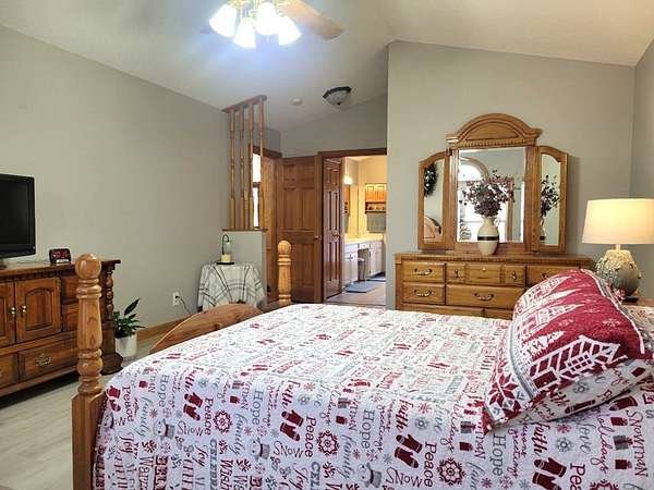 - Bookcases, Ceiling Fan(s), Full Bath, Jetted Tub, Master On Main Level, Shower Separate, Tub-Jetted, Tub-Separate, Vaulted Ceiling(s)
