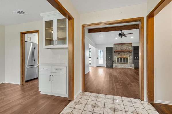 Welcome to your peaceful country retreat on 3 acres just minutes from Bridgeport with no HOA! Surrounded by mature trees, this charming 3 owner home features 3 bedrooms, 2.5 baths and offers both comfort and updates throughout. Step inside to find a warm and inviting living area featuring a beautiful stone wood burning fireplace with custom built-ins, complemented by durable LVP flooring. The updated kitchen and bathrooms bring modern style and function with quartz countertops and contemporary fixtures, while recent upgrades including a new garage door, addtn of a H20 line in garage, new concrete patio and a freshly serviced HVAC system add peace of mind. The property is ideal for both relaxation and practicality, boasting two large sheds, new fencing, and a convenient new parking pad leading into the garage. A circle driveway adds easy access plus tons of space for parking. Outdoors, you'll enjoy plenty of space for gatherings, gardening, enjoying your horses, chickens & more or simply soaking in the quiet country setting of these 3 acres, heavily treed home with pastureland behind it adding to the rural and private feel of the property. Enjoy the sunset from your back porch while taking in the wildlife that frequents the property and you might even hear the faint roar of the lions from their nearby sanctuary, CARE. This home is perfectly located a golf carts ride away from The Bridgeport Country Club, half a mile to Hwy 114 access & close to the town of Bridgeport for all your daily needs. The Lake Bridgeport boat ramp is just 8 miles away so if you are looking for a home that offers a rural feel, privacy, minimal restrictions, quick access to the lake, & daily conveniences nearby, this is the property for you!