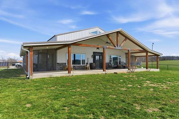 This near 80-acre Polk County property blends premium productivity with modern, efficient living. With over 25 acres of high-producing alfalfa averaging 3 to 4 cuttings a year and 45 plus acres of open, gently rolling pasture, this ranch is ready for livestock or hay production. The remaining acreage includes smaller traps and turnouts, ideal for horses, show animals, or family livestock.The home is an attractive, well built 2 bedroom, 2 bath barndominium offering approximately 1,700 square feet. The main level features an open kitchen and living area with strong natural light and views in every direction, along with a primary bedroom that includes a walk-in shower and oversized soaking tub. An upper loft provides additional living space with a second bedroom and full bath. Attached to the home is a 40x70 shop, divided for workspace and storage, fully spray foamed, and supported by solar panels.Additional structures boost functionality. The property includes an 80x80 open structure with covered space for trailers, equipment, RVs, or boats, integrated with working pens and a loadout area for low stress cattle handling. A 40x60 hay barn offers ample hay and equipment storage. A private well serves 2 automatic waterers and hydrants placed across the acreage. Fencing is excellent and cattle ready.The home sits elevated, overlooking the pasture, with screened porches to take in the surroundings. This well-rounded property offers productive ground, strong infrastructure, and an efficient, attractive home. Whether for cattle, hay production, or rural living, this property stands out.