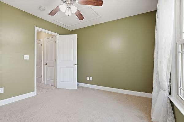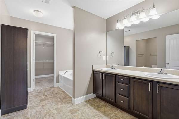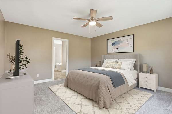 - Bath In Primary Bedroom, Breakfast Area, Cathedral Ceilings, Ceiling Fans, Dual Sinks, Garden Tub Roman Tub, Laminate Countertop, Main Level Primary, Pull Down Attic Stairs, Separate Shower, Walk In Closets, Walk In Shower