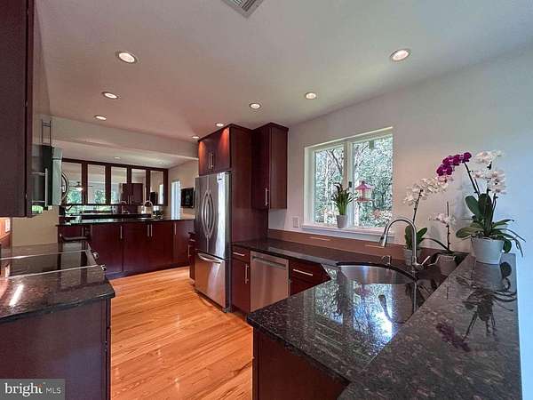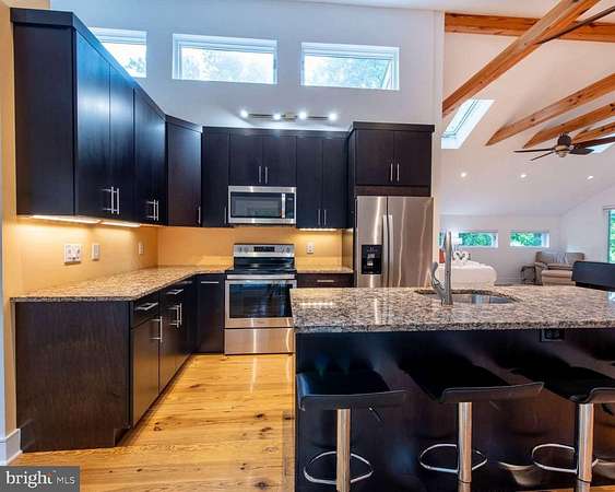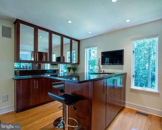 - Bar, Built-Ins, Combination Kitchen/Dining, Entry Level Bedroom, Island Kitchen, Recessed Lighting, Upgraded Countertops, Whirl Pool/Hot Tub, Window Treatments, Wood Floors, Wood Stove