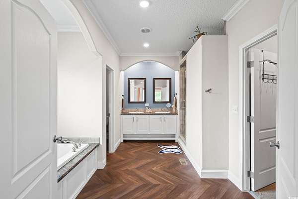 Phrases like "hidden gem with big possibilities", "peace and quiet while still close to the beach", and "you need to see this one" all could be used for this incredible property just over the state line in North Carolina! Beautiful 3 bedroom 2 bathroom home with bright open floor plan and amazing features you will not find in most properties at this price point. Huge kitchen with Island set up and stainless steel appliances. Luxurious Master Bathroom with garden tub, double vanity, walk in closet and beautiful tiled walk-in shower with double shower heads. Rounded wall corners, crown molding, drywalled interior, so much natural light, and more! Home sits on sprawling 5 acre lot with beautiful plants and trees. Want horses? No Problem. Need RV parking? Not an issue. Need space? This is it! And still only a short drive to the beautiful beaches of north myrtle beach, golf, restaurants, shopping and more on hwy 9. Home even has its own private well for water and a septic system. Fiber internet available as well through ATMC. This idyllic oasis has it all and definitely won't last long - so schedule your tour today!