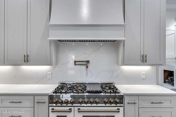Welcome to this completely remodeled, stunning 6-bedroom, 5.5-bath home set on approximately 2 acres. From the moment you step into the grand entryway with soaring ceilings, you'll feel the sophistication and warmth this home offers. The spacious living room is the heart of the home, seamlessly connecting to a designer kitchen that will impress even the most discerning chef. Enjoy a massive island with built-in storage, quartz countertops, Viking appliances, a wet bar with a built-in ice maker, and an oversized pantry. A spacious keeping room with a cozy fireplace completes the perfect gathering space. The dreamy primary suite is a true retreat, featuring a sitting area framed by bay windows. The spa-like primary bath showcases elegant designer selections, a soaking tub, a large walk-in shower, and a double vanity. The ideal layout includes 2 bedrooms and 2.5 baths downstairs, while the upstairs offers 4 bedrooms, 3.5 baths, and a children's den-perfect for extra living or play space. Step outside to the expansive covered patio overlooking the private acreage-an ideal setting for entertaining, dining, or relaxing year-round. Practical updates add even more value: a brand-new roof, three new HVAC units, and abundant storage space. In addition to the storage room on the other side of the garage, there's also a bonus storage area accessible through one of the upstairs bedrooms, giving you room for everything. With a gorgeous office, thoughtful design choices throughout, and plenty of space for both gatherings and quiet retreats, this property is more than a home-it's an estate.